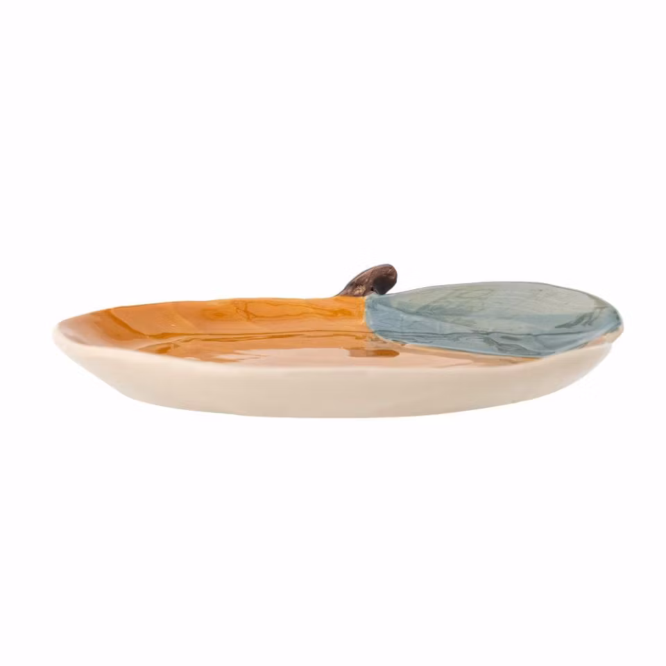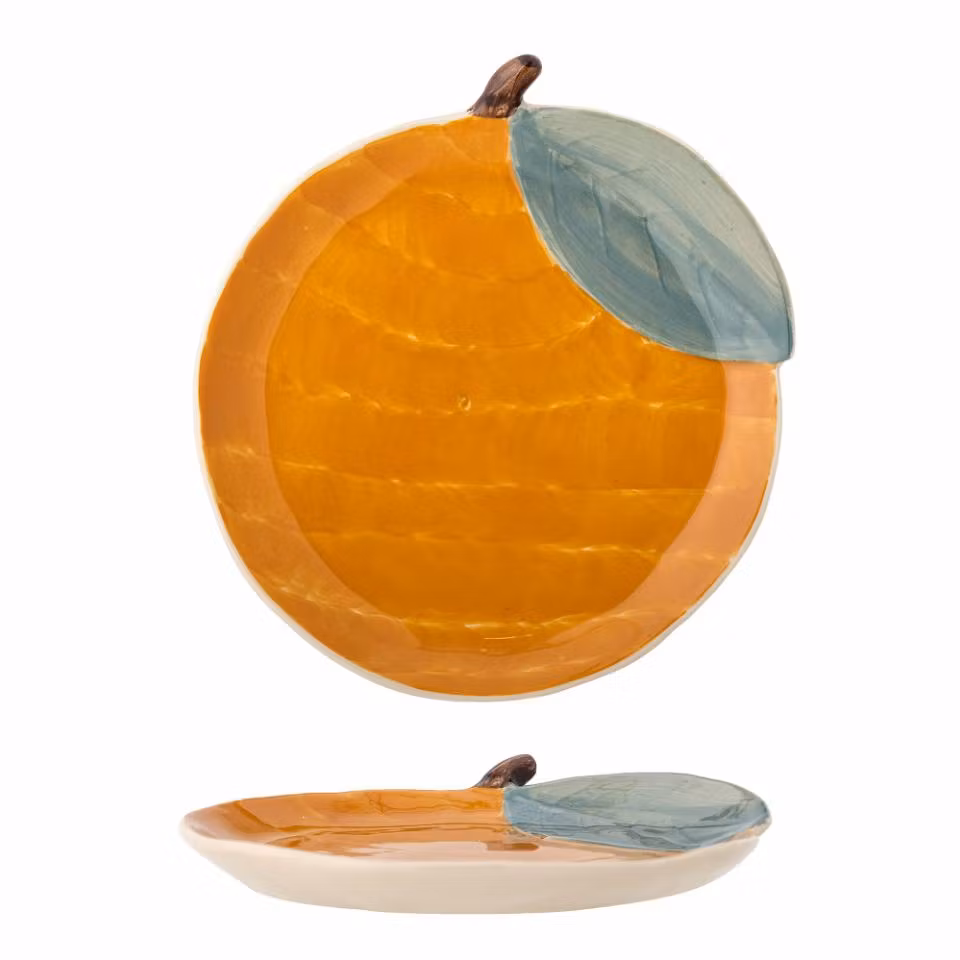 Underbart fat eller tallrik i form av en apelsin. Varje tallrik är unik, eftersom de handmålade detaljerna skapar små variationer i designen.