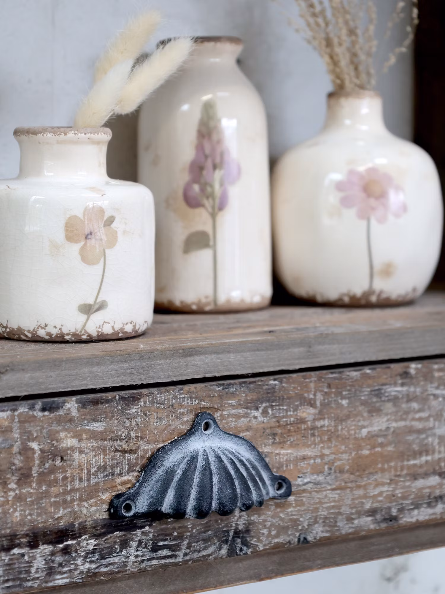 Dekorativt järnhandtag i antikgrå. Från Chic Antique.