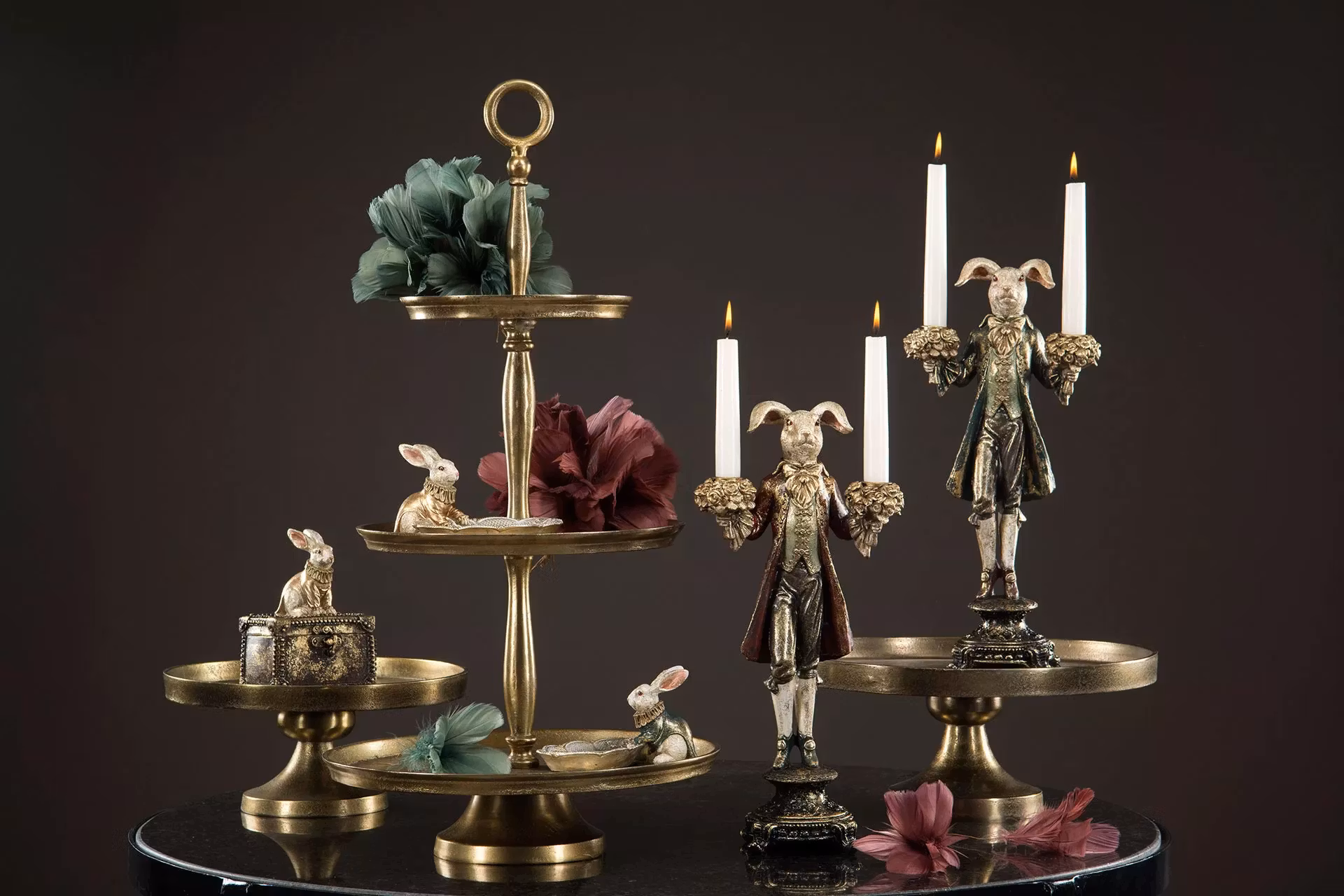 Detta dekorativa fat är tillverkat av polyresin och pryds av en vacker kaninfigur som ger en lekfull men stilren känsla.