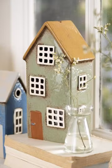Vem älskar inte de vackra Nyhavn-husen med sina söta små detaljer och glansiga keramik? Husen är inspirerade av hamndistriktet Nyhavn i Köpenhamn, känt för sina färgglada hus, alla med en unik historia och ett lite udda uttryck. De charmiga keramikhusen kan stå ensamma, placerade bland krukor och växter, eller radas upp på rad för att skapa en liten stadsdel. Husen i Nyhavn skapar en härlig atmosfär var de än är placerade, och när ett tänt värmeljus placeras inuti kan du njuta av det mysiga ljuset som skiner genom de små fönstren. Det finns alltid en viss oförutsägbarhet i glaskeramik och under bränningen blir färgerna levande. Det är just detta som ger de små husen ett unikt och originellt utseende, med små färgskillnader och rustika kanter.