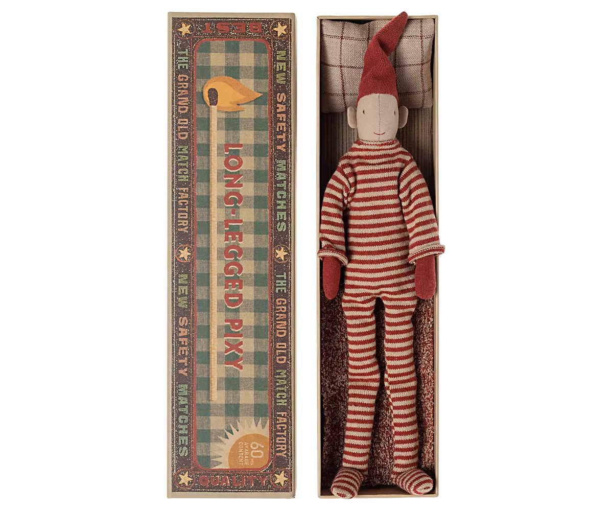 En ny pixy-stil har lagts till den klassiska pixy-kollektionen. Denna nisse bär en stickad kostym och har magneter i händerna så att den kan hänga eller sitta överallt. Den kommer i en dekorativ tändsticksask med mjukt sänglinne inuti.