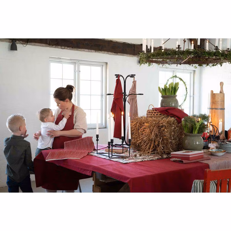 Denna duk med linnelook, är tillverkad av återvunnen bomull och återvunnen polyester.