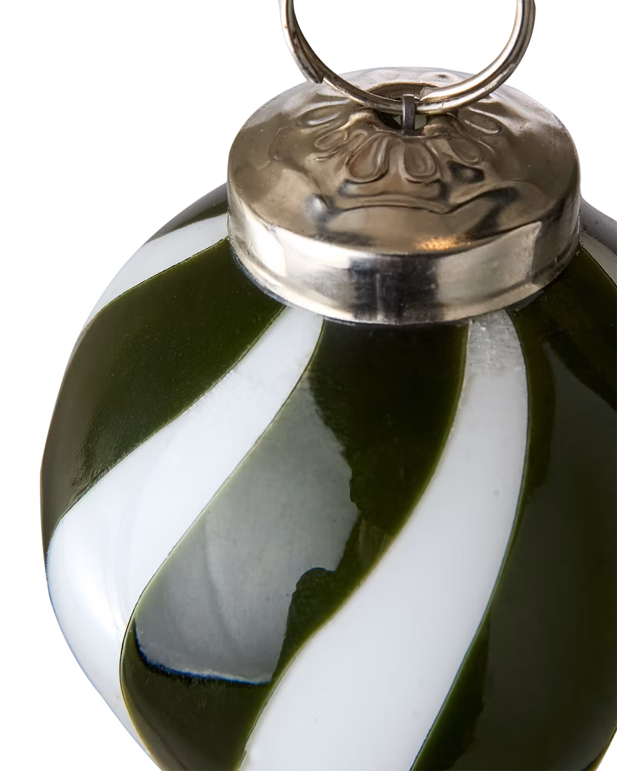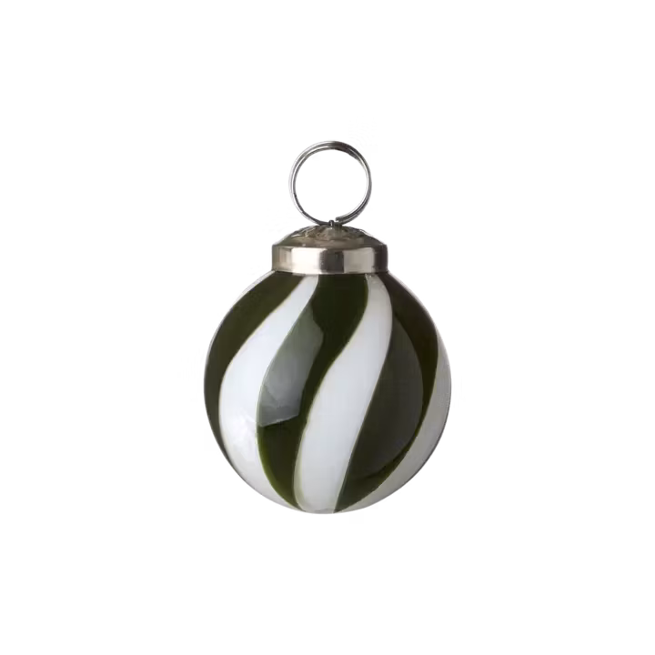 Elegant julgranskula i grönt och vitt glas. Skapa en stämningsfull jul med den randiga kulan Circus – klassisk design i tidlös stil.