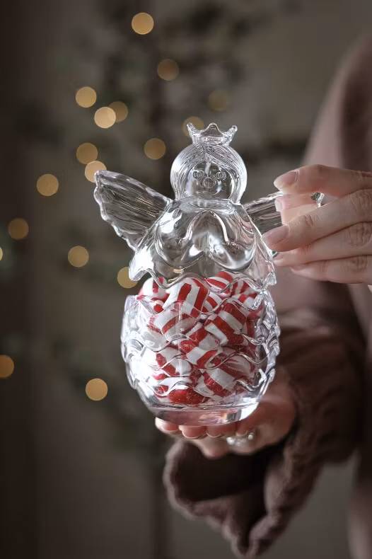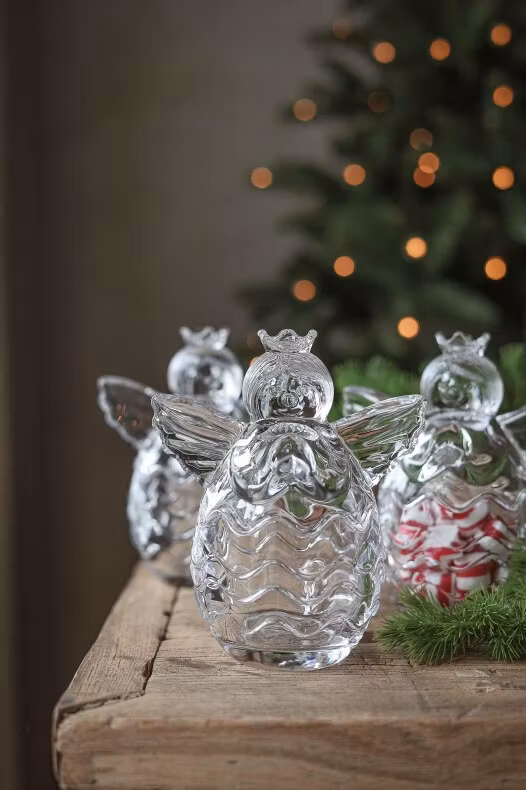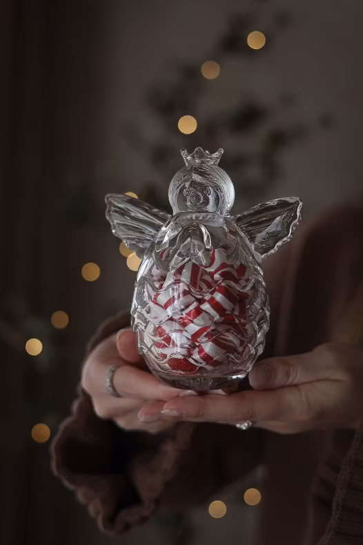 Söt glasskål i form av en ängel. Perfekt till godis, dekoration eller LED-ljus. Handdisk rekommenderas för att bevara glasets vackra detaljer.