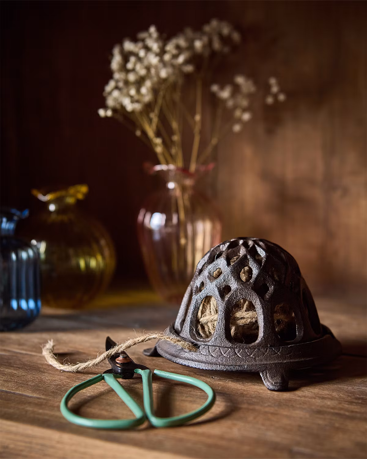 Den passar lika bra i köket för att klippa örter och snören som i arbetsrummet eller växthuset där en robust sax alltid behövs nära till hands. När den inte används blir den dessutom en fin detalj på skrivbordet, i en låda eller hängande på en krok.