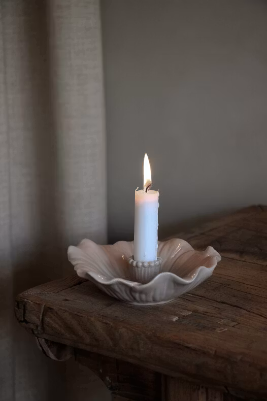 Blomstra ljusstake i keramik med mjuka blomstrande former. Skapa en varm och elegant dukning. Matcha med fat, muggar och skålar i samma serie.