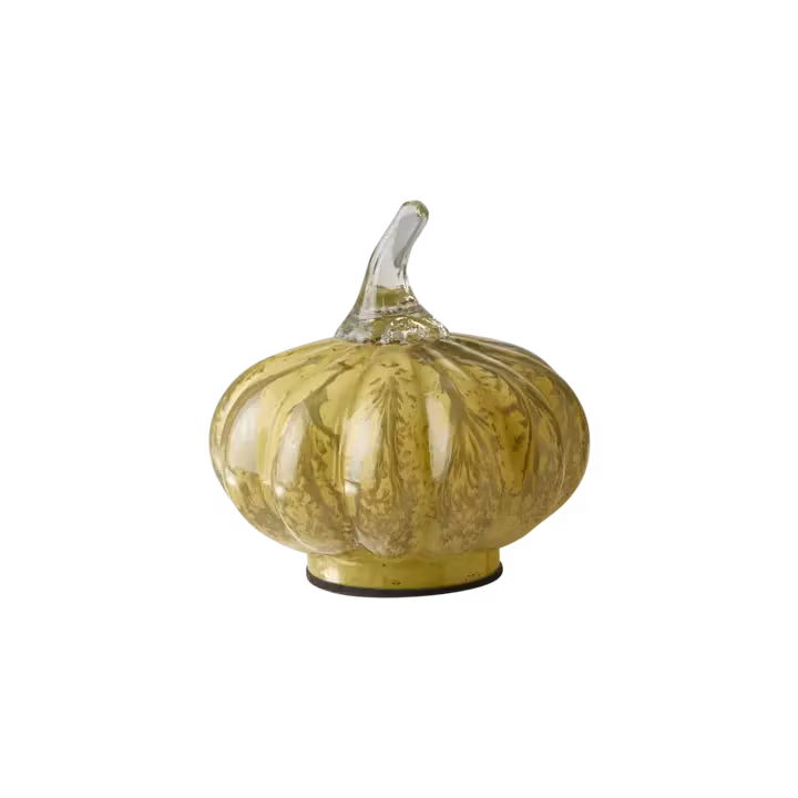 En vacker glaspumpa i gul nyans som sprider värme och glädje i inredningen. Den lilla pumpan är tillverkad i glas och spraymålad för att få en mjukt skimrande yta som fångar ljuset på ett vackert sätt.