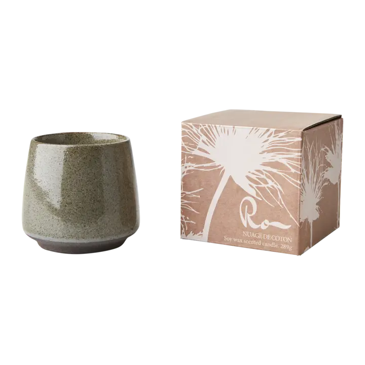 Vackert doftljus i brun keramikkopp. Kan användas med värmeljus när doftljuset är slut.