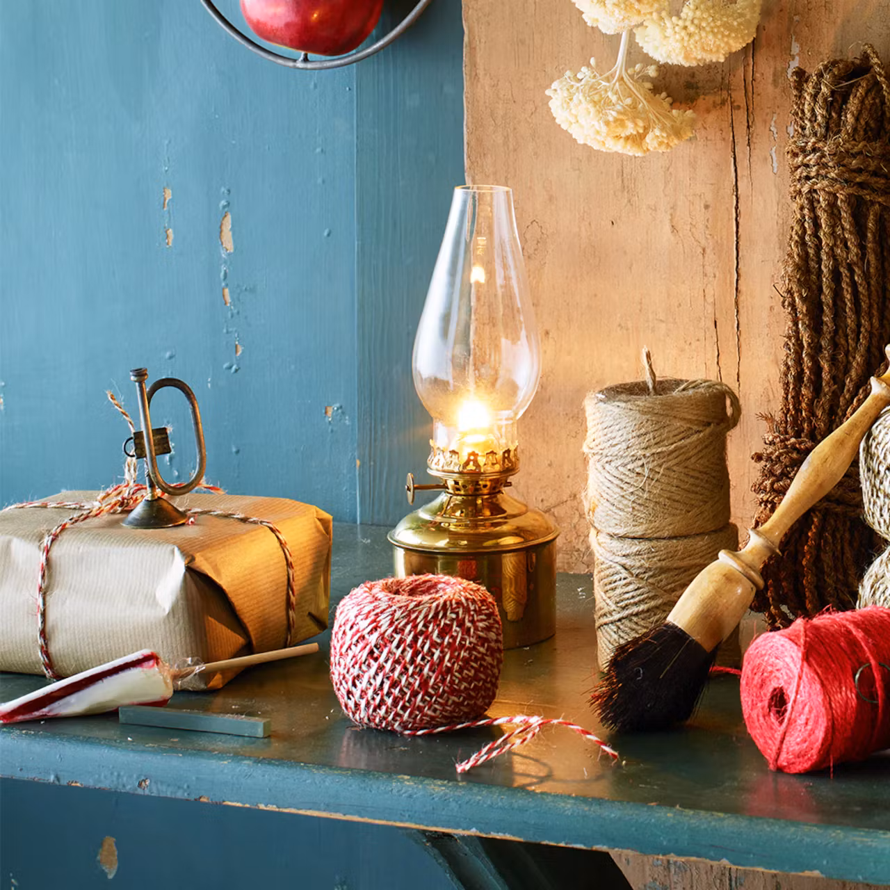 - Tänd lampan och justera lågan så att den inte blir för hög genom att skruva upp eller ner veken