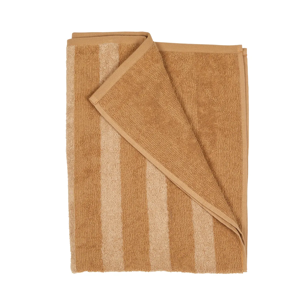 En handduk där det mjuka möter det levande. De subtila ränderna växer fram naturligt i tyget, där materialens olika sätt att ta upp färg skapar ett organiskt och unikt uttryck. I den varma havretonen får handduken ett ljust och inbjudande uttryck.