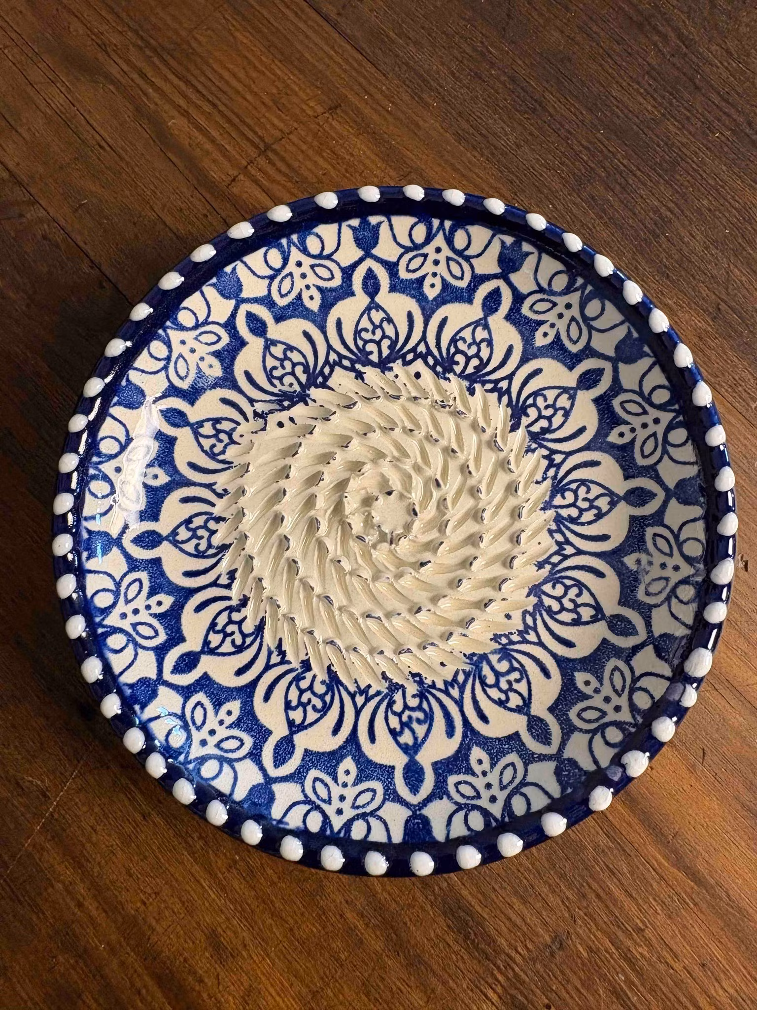 Gazania Rasca rivskål i handgjort spanskt stengods Ø12 cm. Perfekt för vitlök, ingefära och citronskal. Funktionell och dekorativ kökshjälp.
