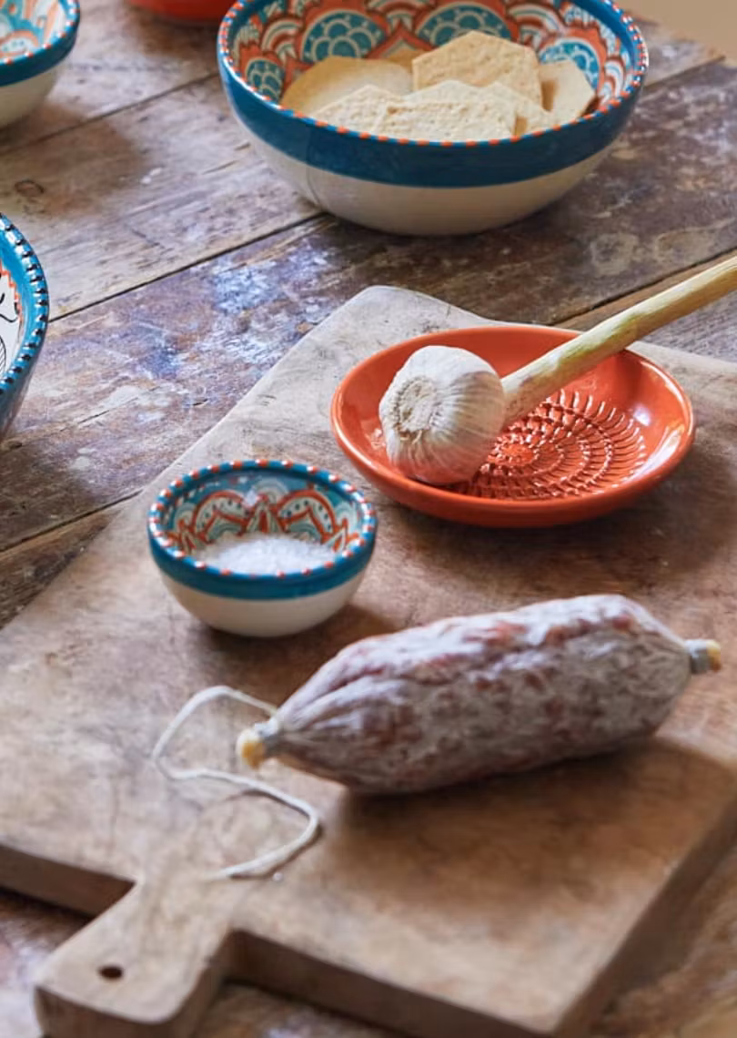 En liten handgjord tapasskål i spanskt stengods, perfekt för att lyfta de minsta rätterna på ett inbjudande tapasbord.