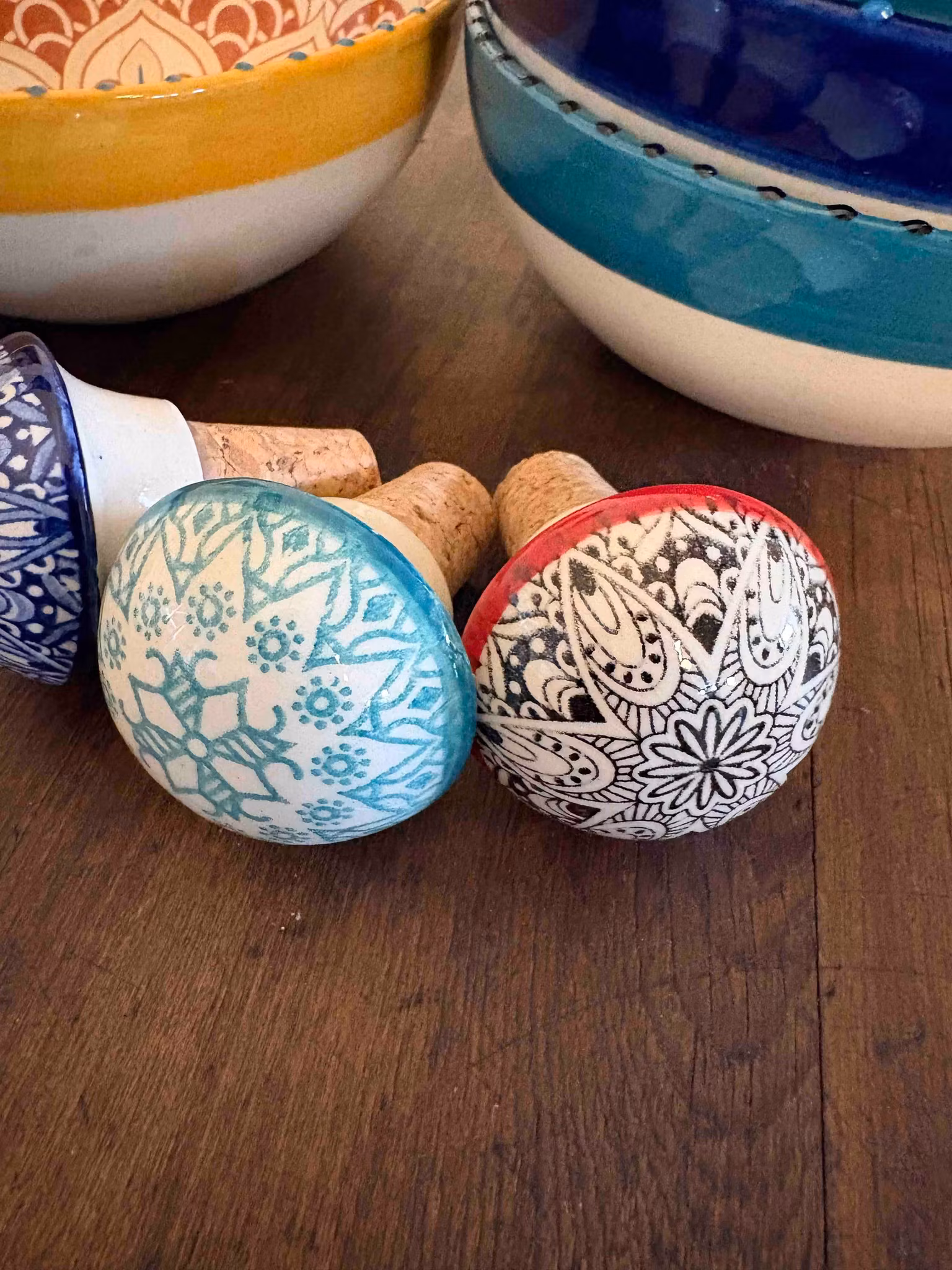 Inspirerad av traditionellt keramikhantverk från södra Spanien är varje vinpropp ett litet konstverk som tillför en färgstark och personlig detalj till ditt bord eller vinflaska. Perfekt som present eller som stilfull detalj för hemmets vinälskare.