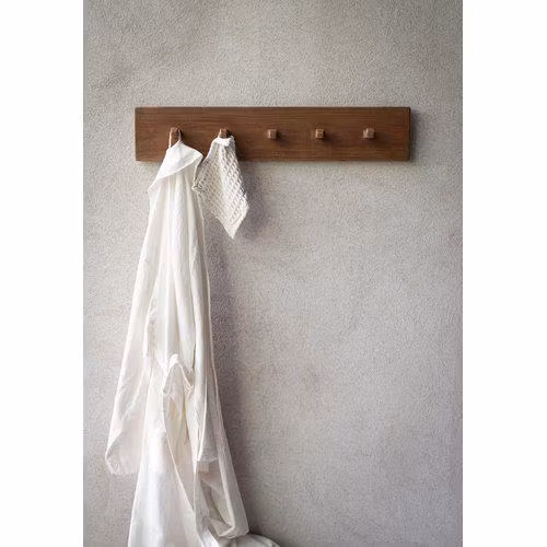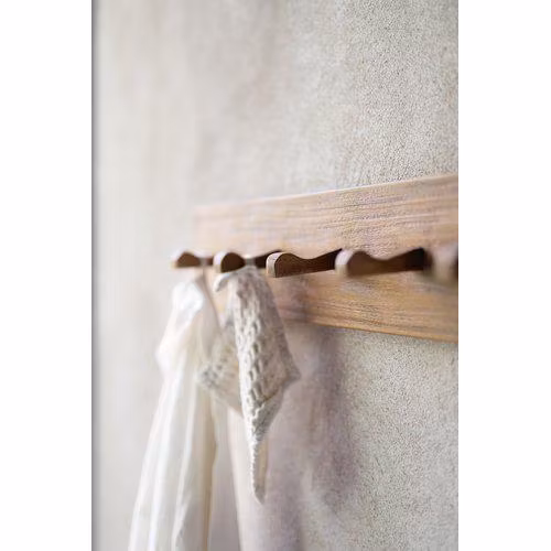 Den generösa längden gör den perfekt för att hänga handdukar eller vackra accessoarer, samtidigt som träets varma nyans och struktur blir ett levande inslag i hemmet. Den naturliga finishen och det massiva träet ger en exklusiv känsla och lång hållbarhet.