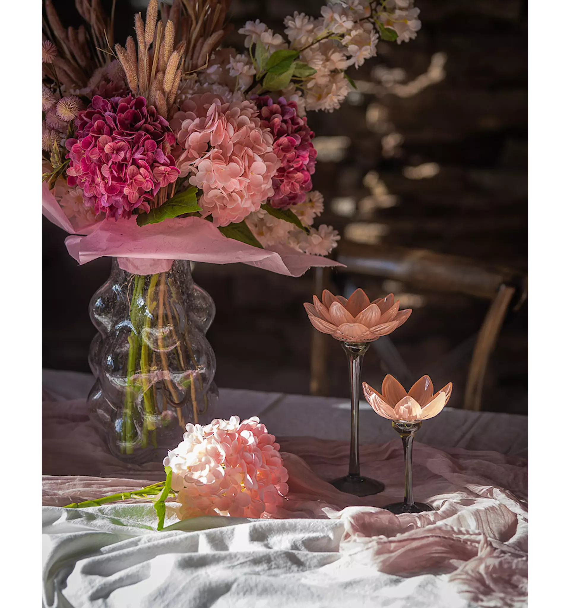 Rosa ljuslykta i form av en näckros. Sprid varmt och vackert ljus i rummet med denna eleganta glaslykta.