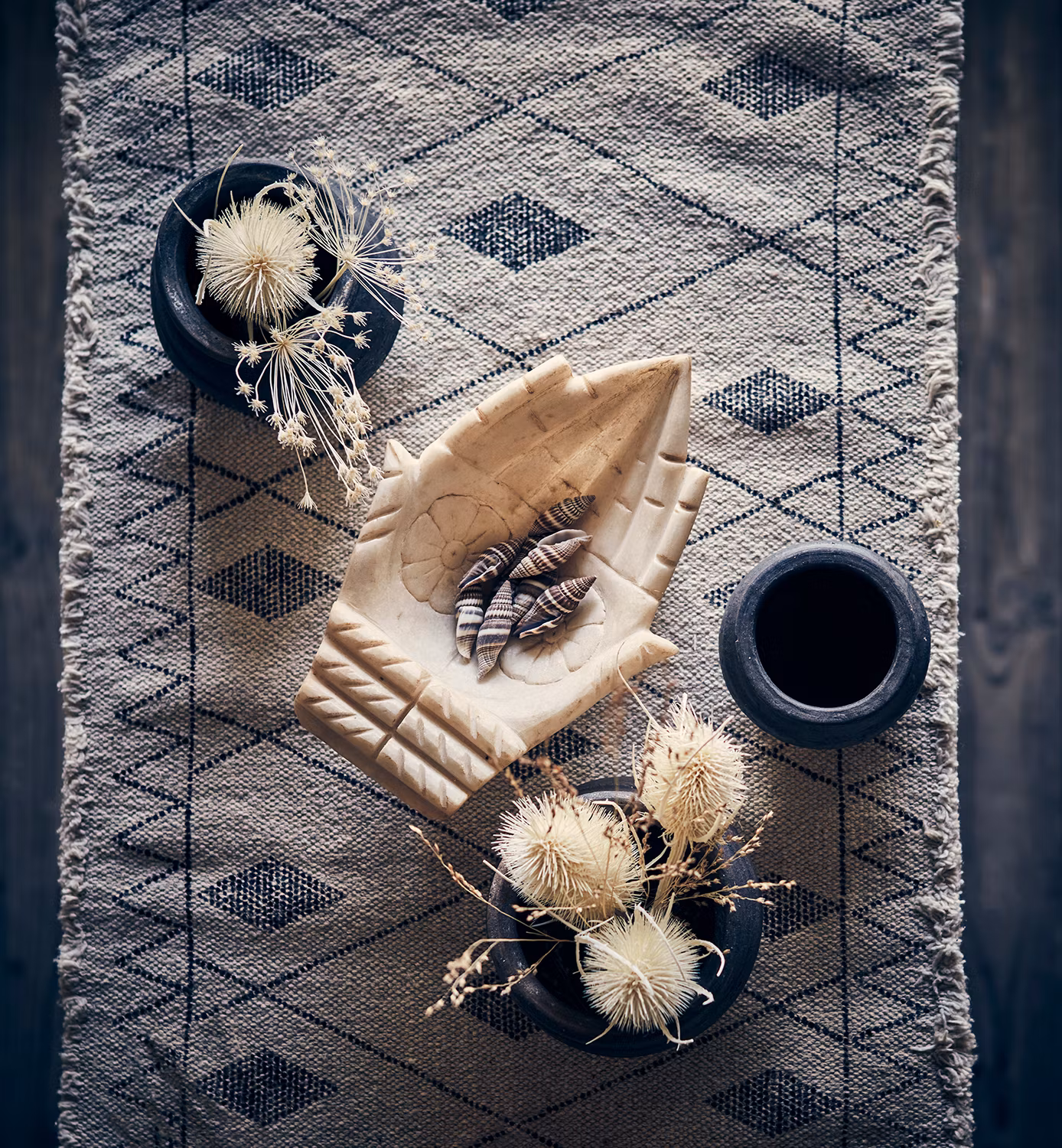 Ge matbordet en stilren och naturlig känsla med löparen Fernando i natur och svart.