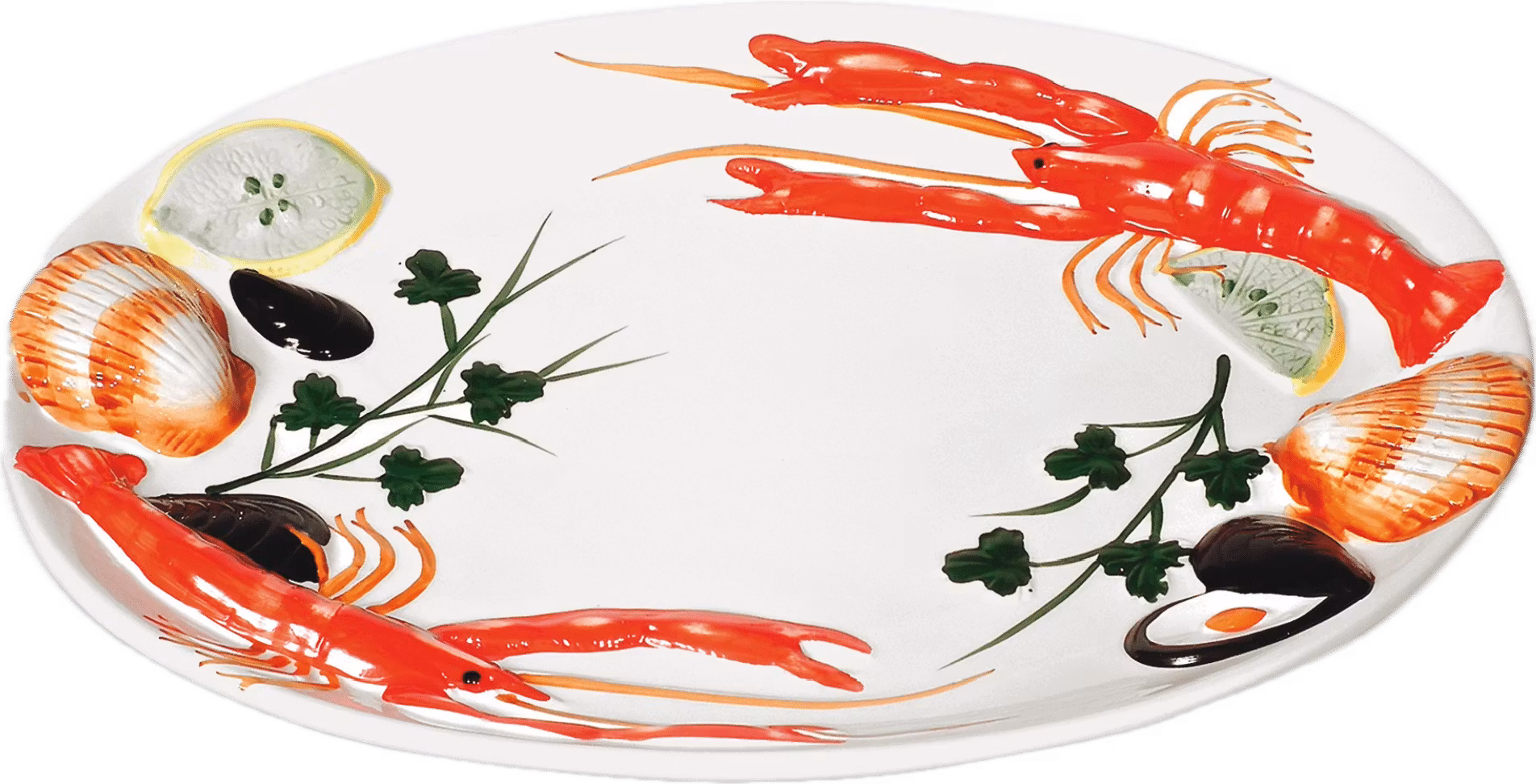 Marisco Red Lobster stort handmålat porslinsfat 30×40 cm. Vackert med skaldjur, perfekt för servering eller som dekorativ detalj med medelhavskänsla.