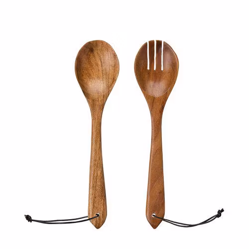 Det slitstarka träet ger en varm och naturlig känsla, samtidigt som de ergonomiska formerna gör det lätt och bekvämt att använda dem vid varje måltid. Ett klassiskt val som passar i både vardag och fest.