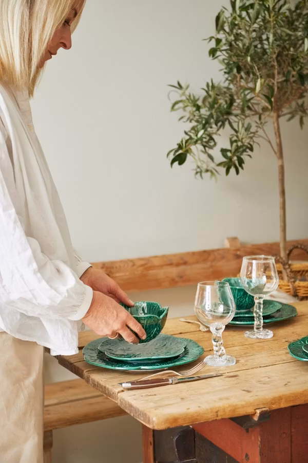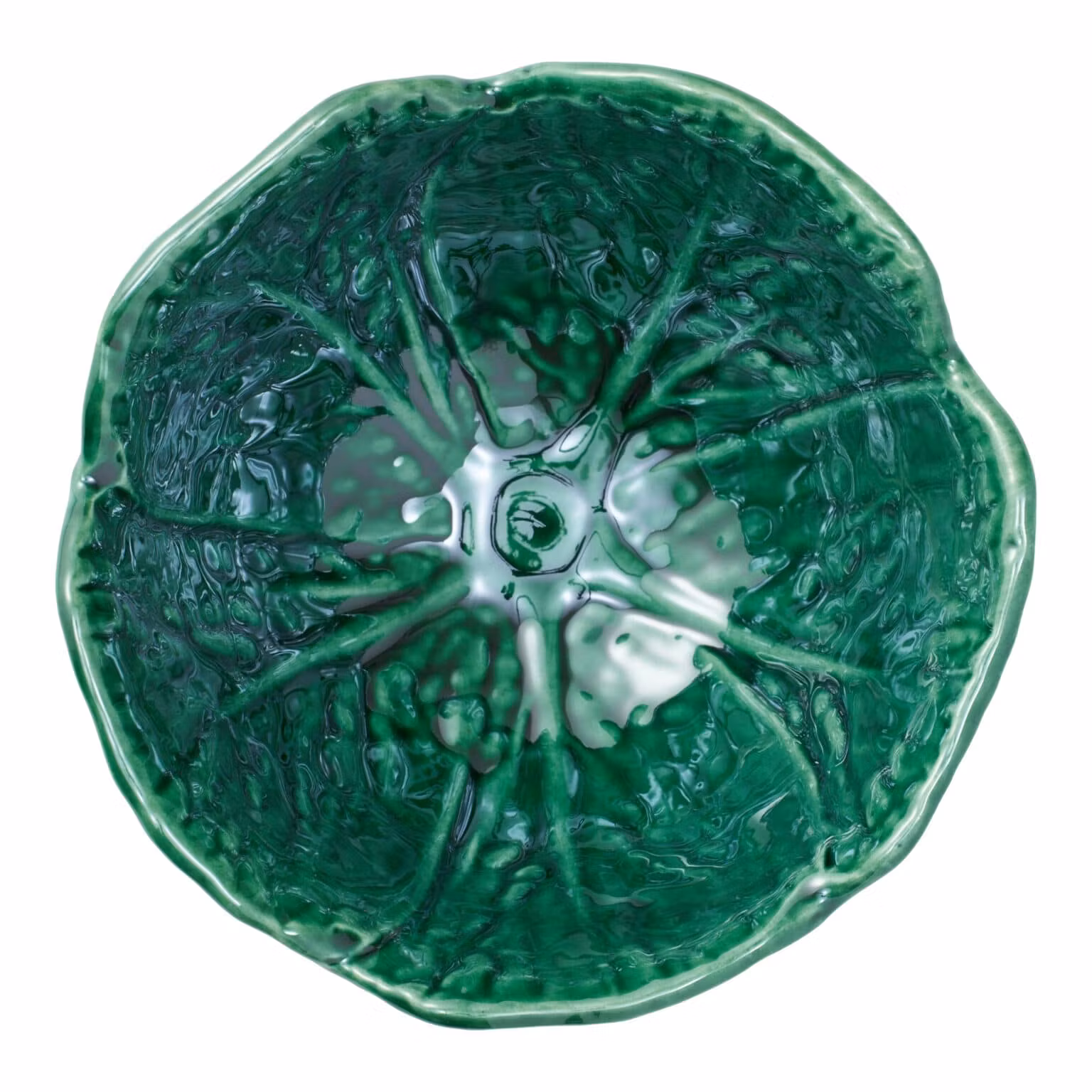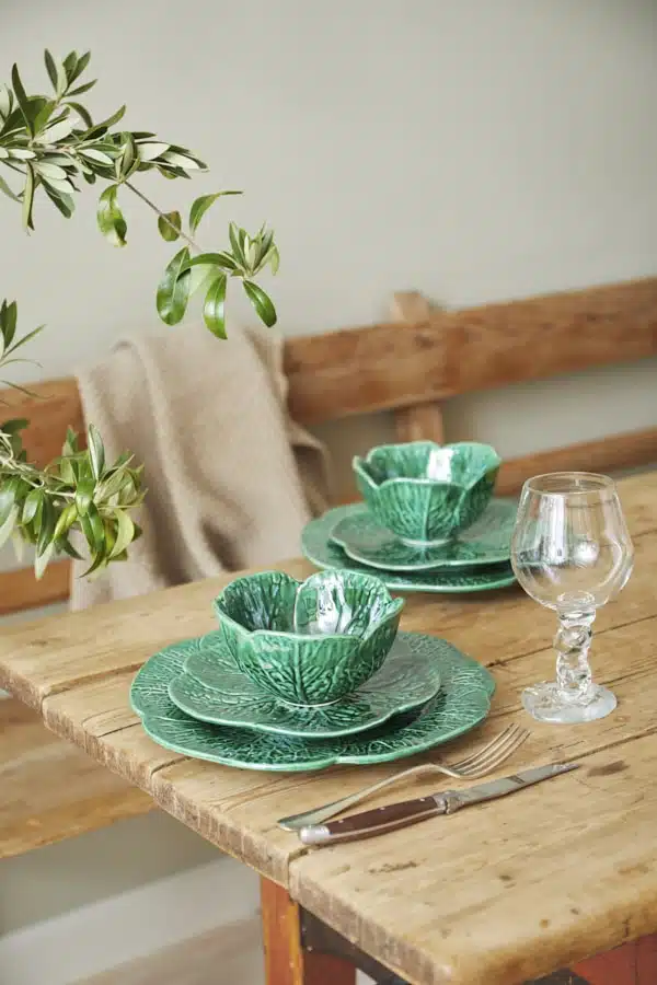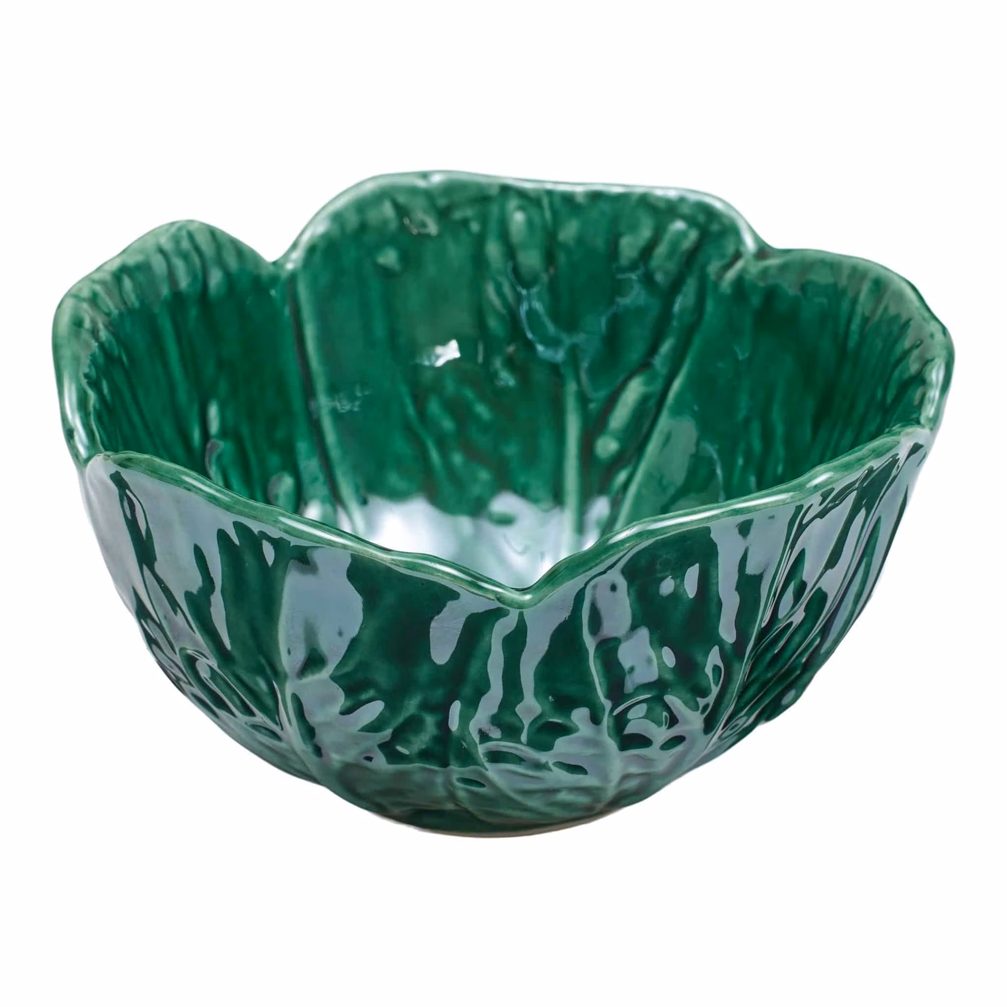 Savoy Skål Liten i Emerald – handgjord keramik från Portugal. Liten skål formad som kålblad, 13,5 cm. Perfekt till sallad och servering.