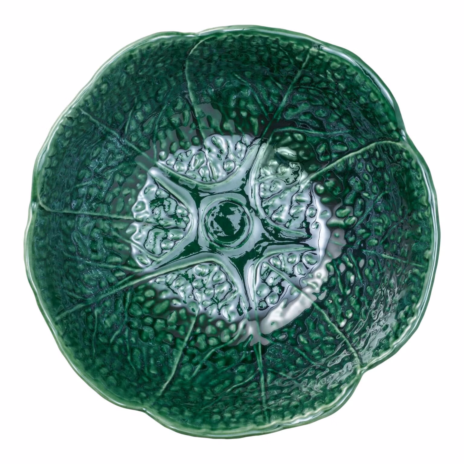 Den stora skålen är formad som mjuka kålblad och glaserad i en djup, mörkgrön nyans som ger ett levande och elegant uttryck. Med en diameter på 21,5 cm är den perfekt som serveringsskål till sallader, tillbehör eller andra rätter – lika fin till vardags som till dukningar med det lilla extra.