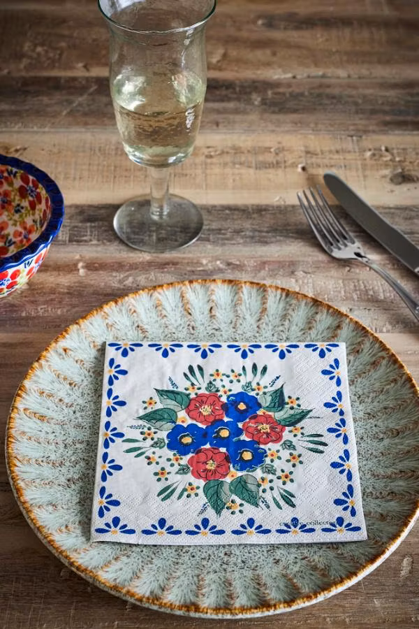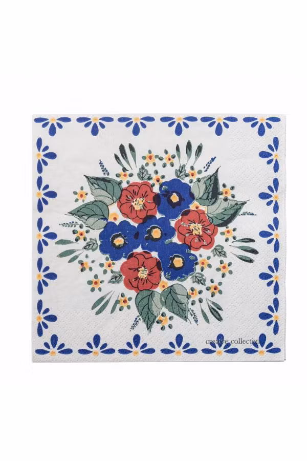 Set med 20 färgglada servetter från Creative Collection, perfekt för vardagliga måltider eller festliga tillfällen. Servetterna är tillverkade i papper från FSC® Mix och har ett blommigt motiv i röda och blå toner. När servetten vecklas ut avslöjas flera olika blomarrangemang som ger en lekfull och dekorativ detalj på bordet. Ett enkelt sätt att addera färg och charm till dukningen.
