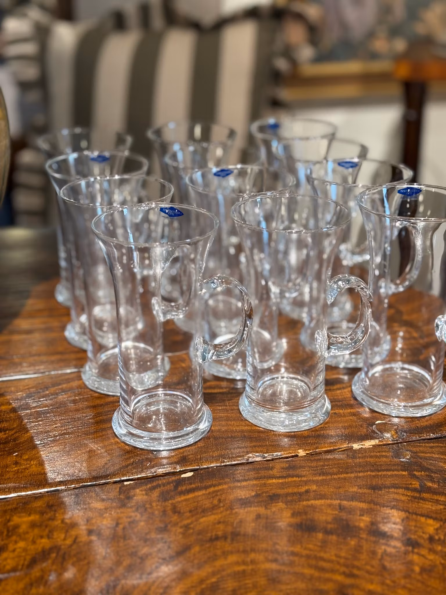 12 st Irish Coffee-glas från Nuutajärvi, Finland. Utan fot, höjd ca 14 cm. Klassisk nordisk design i fint skick – perfekt för varma drycker.