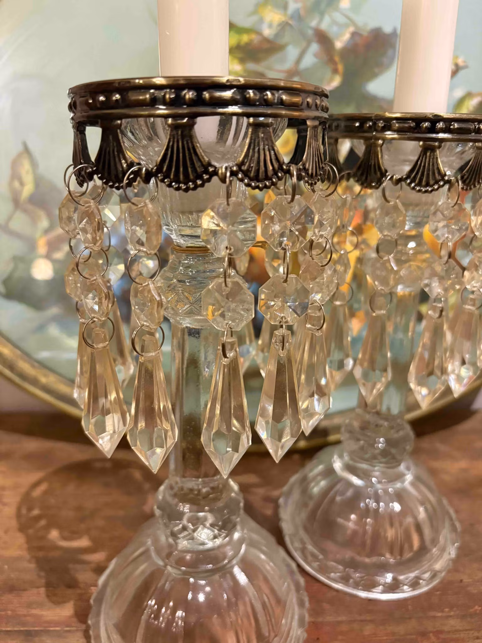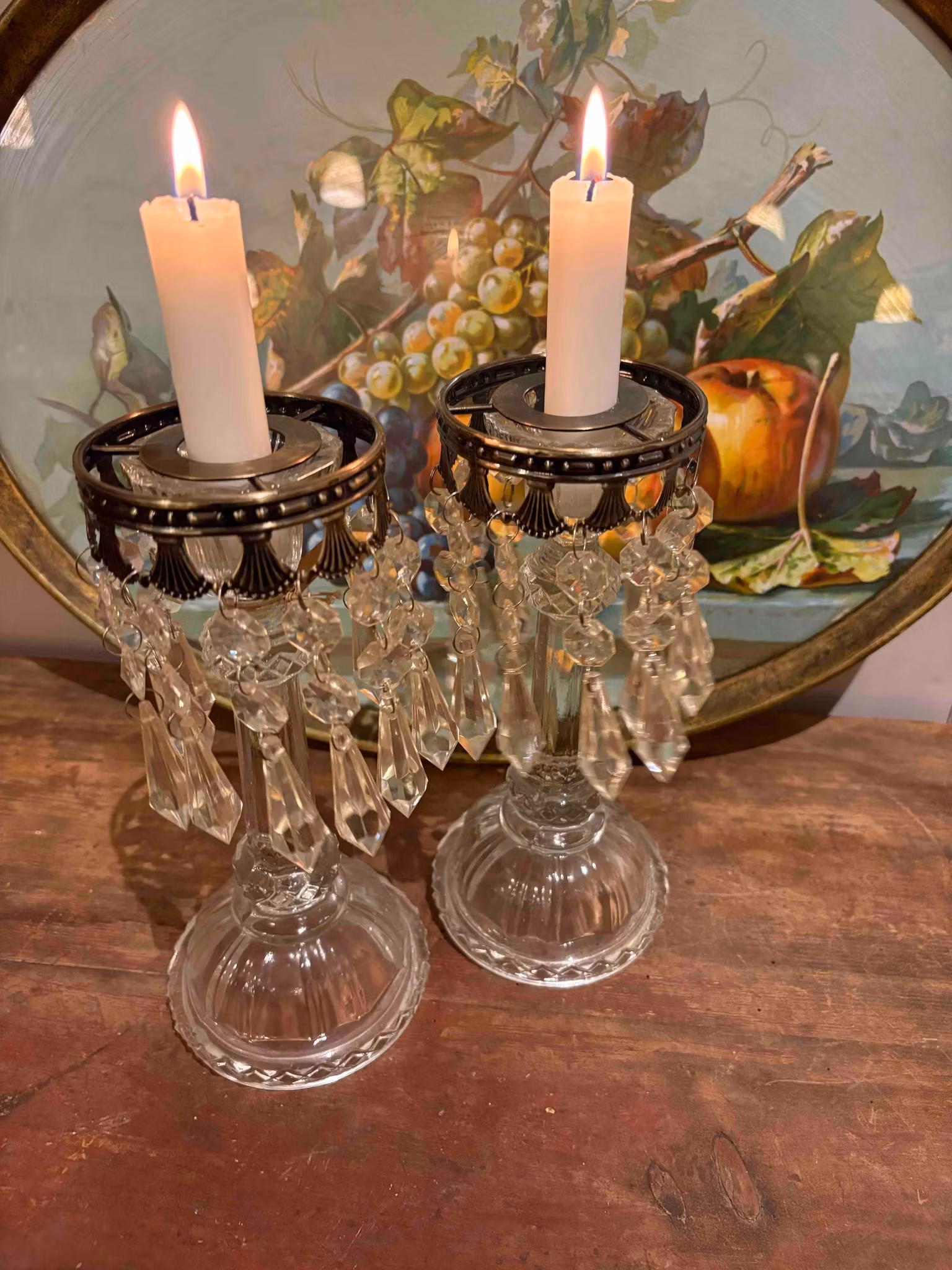 Ljusmanschetter med prismor – 2 st. Pampiga manschetter i metallram, fint skick. Perfekta för ljusstakar och dekorativa dukningar. Vintage ljusmanschetter.