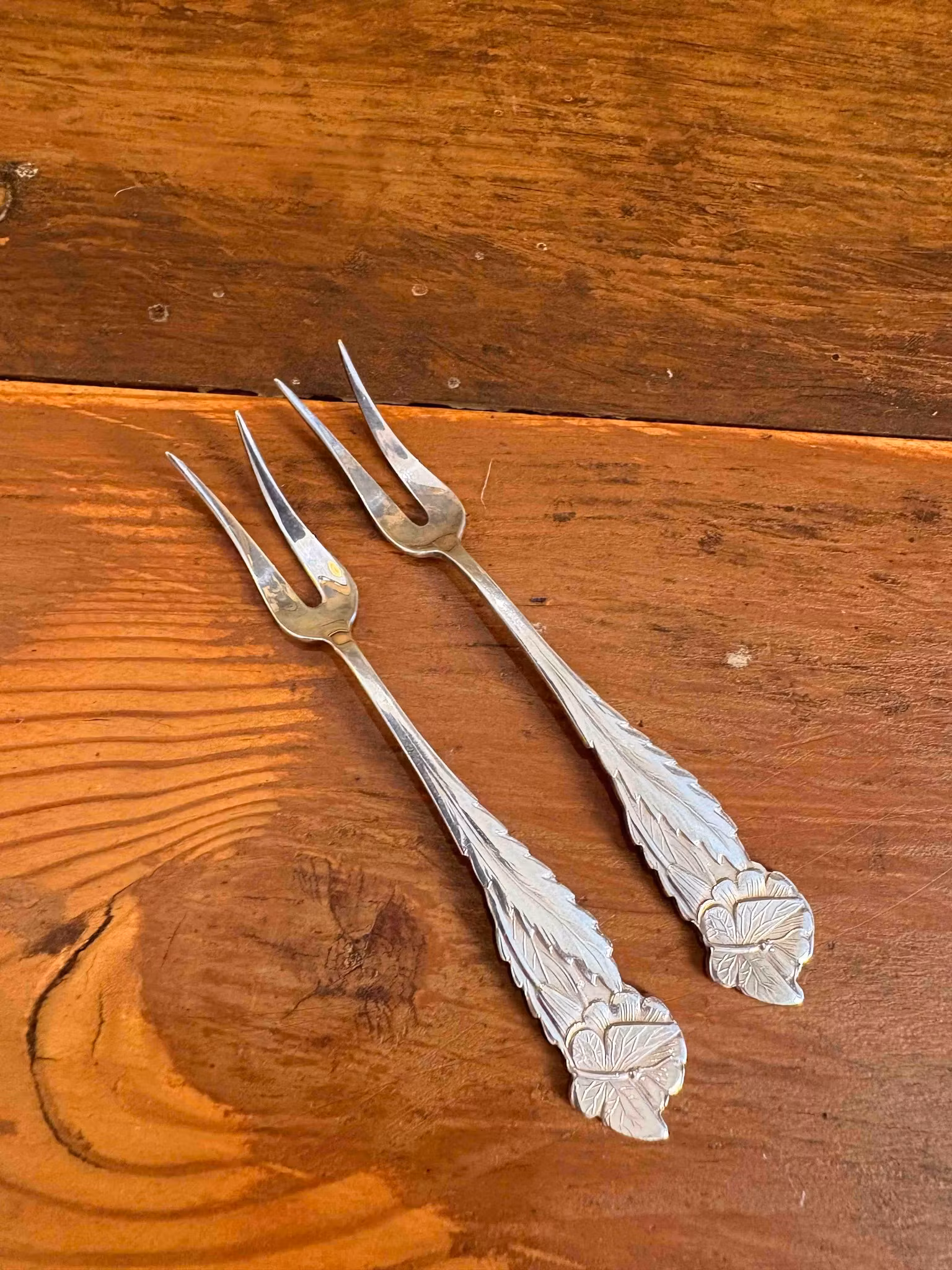 2 små plockgafflar, ca 10 cm. Perfekta för tapas, oliver och små serveringar – en vacker detalj till dukningen.