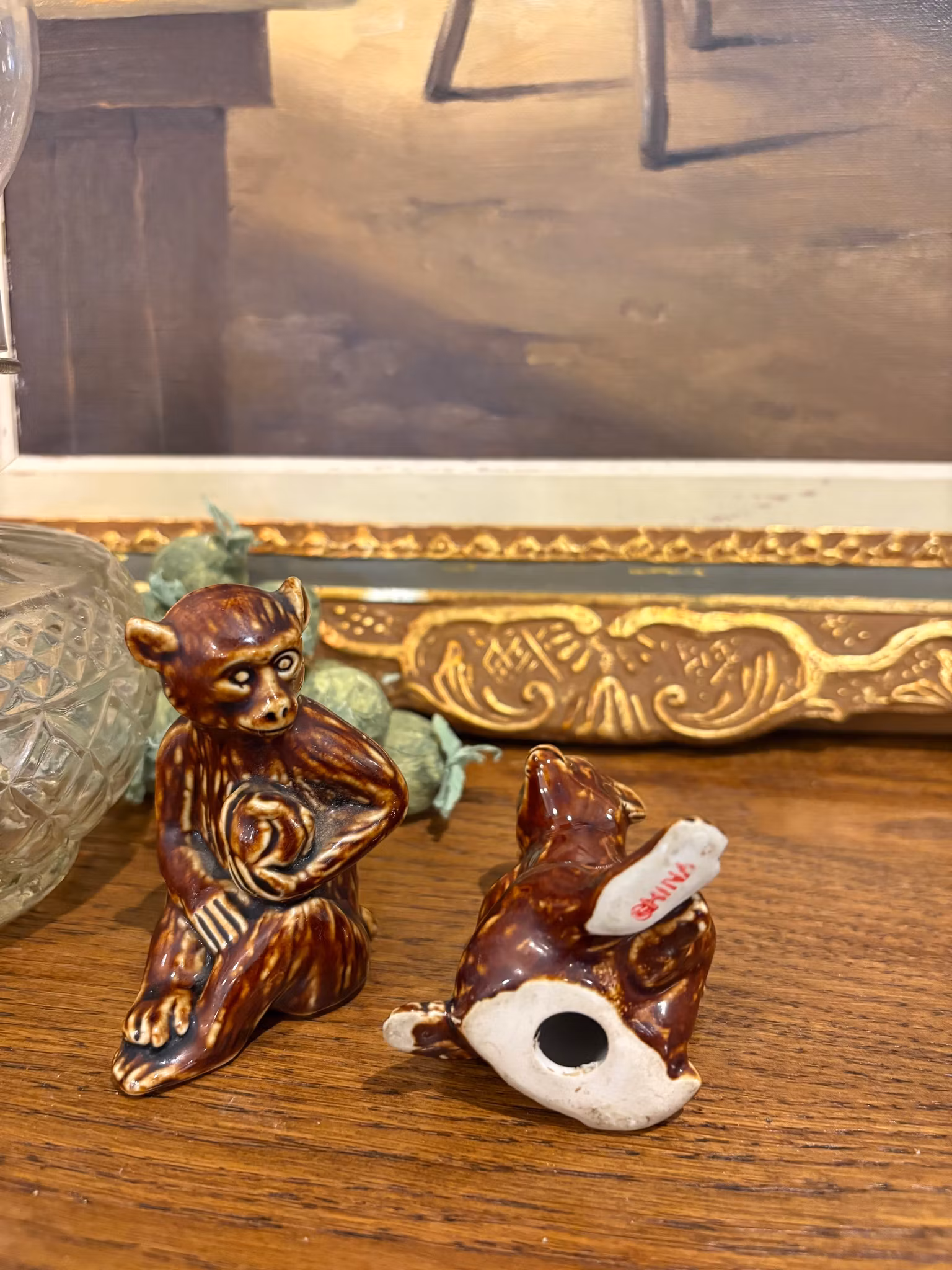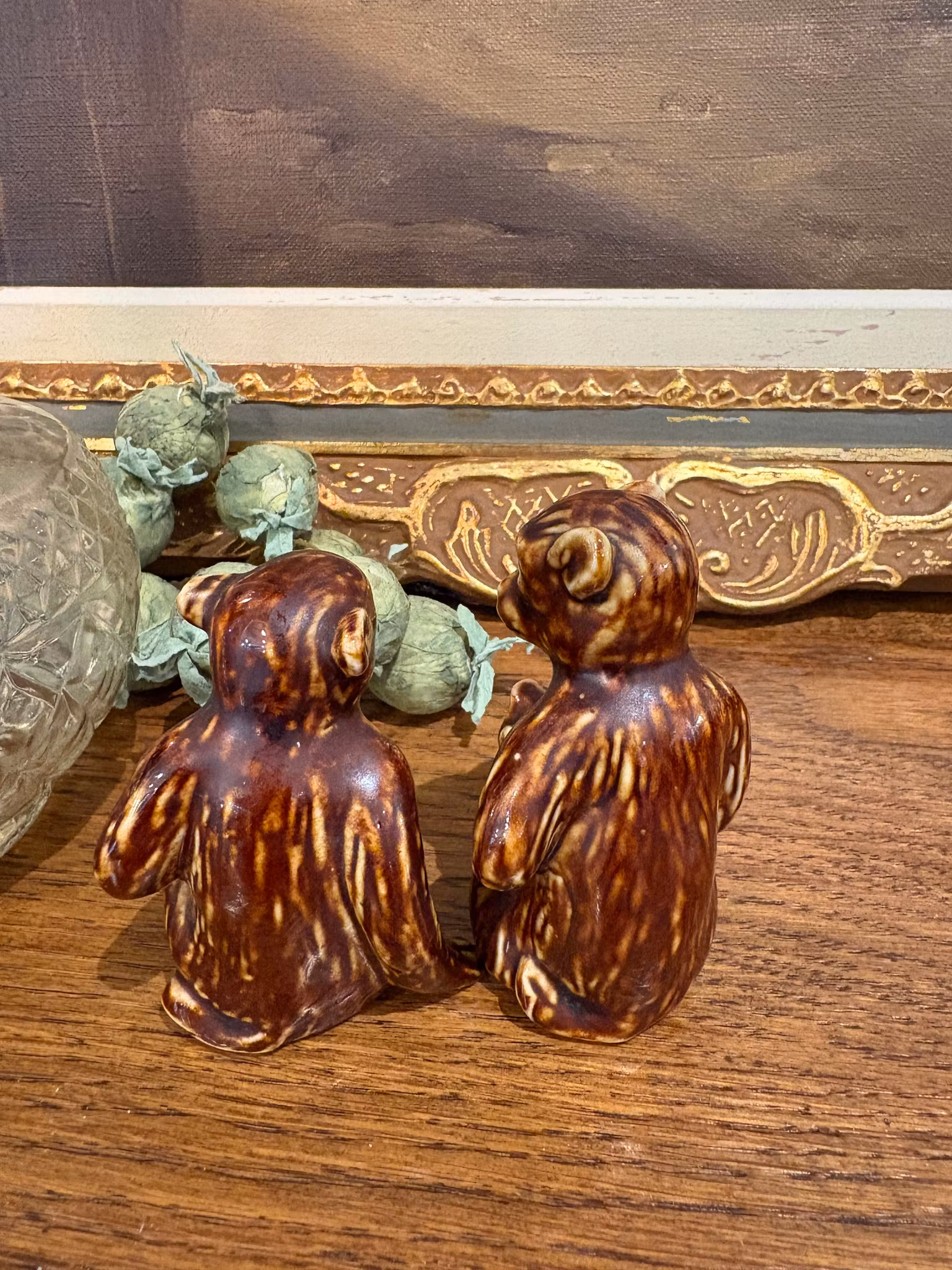 2 st apor i keramik från Kina. Charmiga, dekorativa figurer med vackra detaljer och glansfull yta. Fint skick och perfekt som personlig inredningsdetalj.