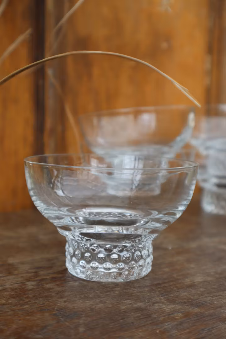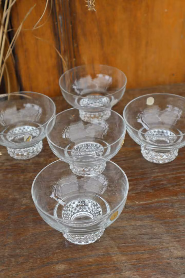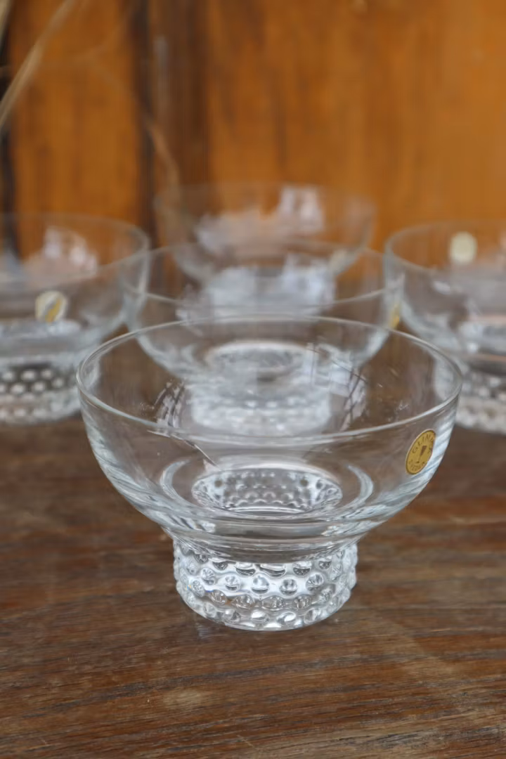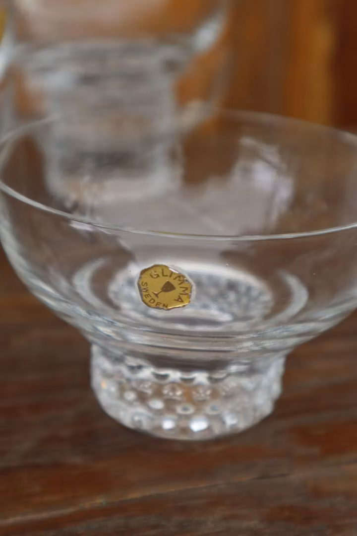 5st vackra dessertskålar - Design Glimma Glasbruk - Stil Tarantella i klarglas och bubblig glasfot