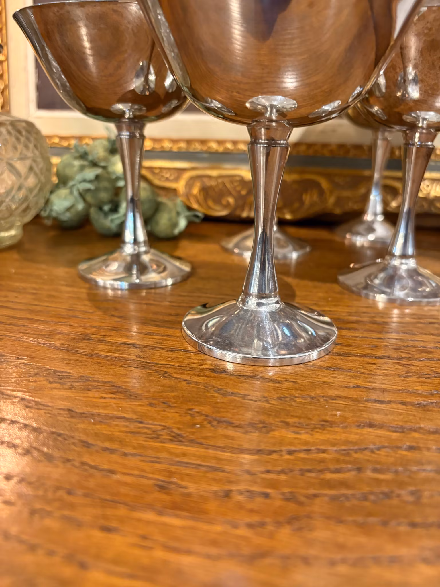 6 st cocktailglas i silverplätering från Portugal. Eleganta dessertglas perfekta för glass, bakelser eller små desserter. Vacker glans och fint bruksskick.