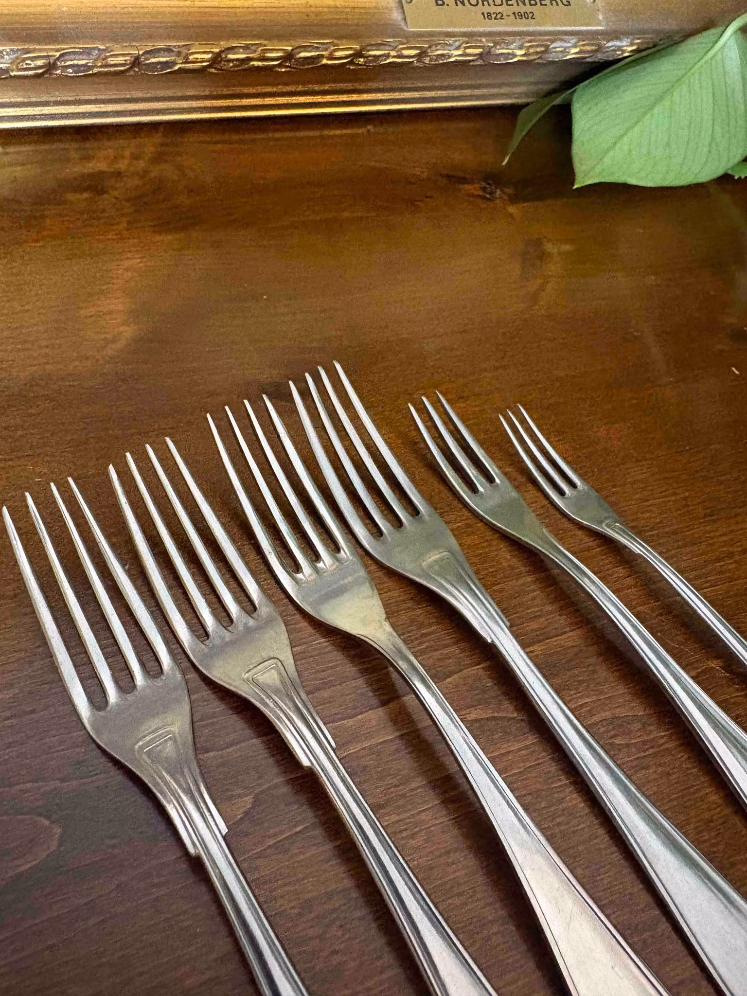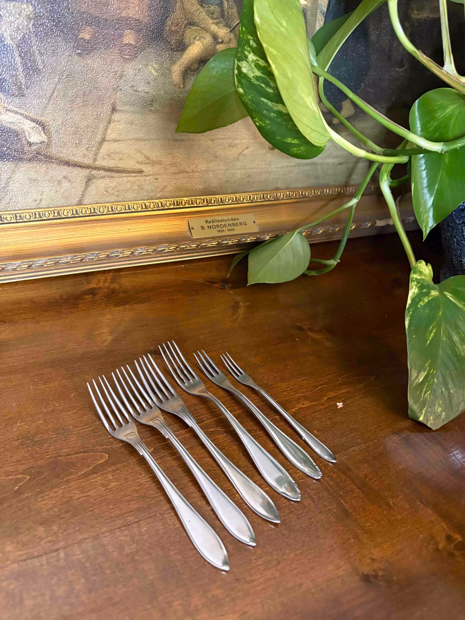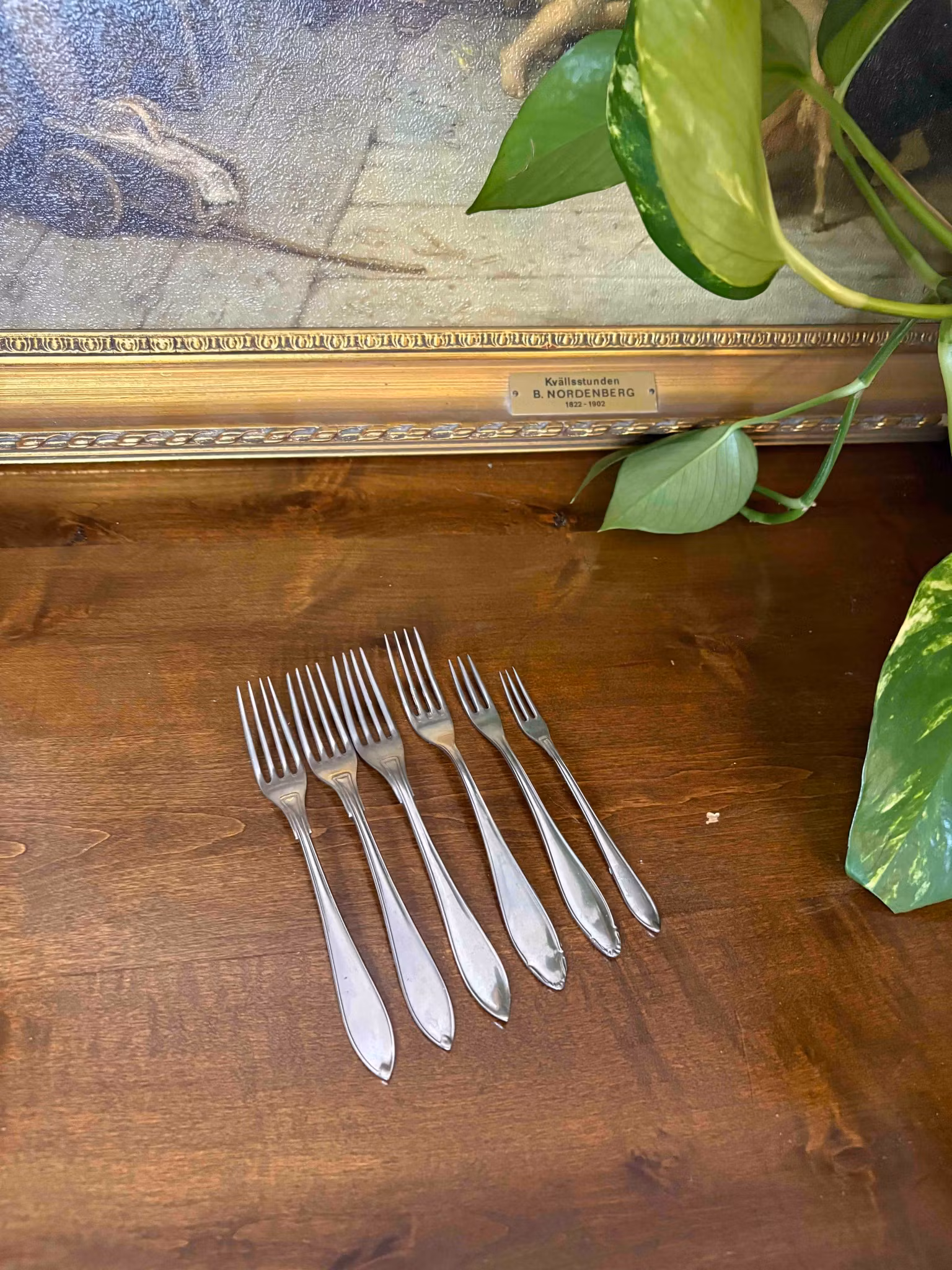 Set med 6 charmiga påläggsgafflar i lite varierande utföranden. Den minsta är ca 11 cm lång och den längsta ca 13 cm. Perfekta för frukosten, plockmaten på fredagskvällen eller när du vill lägga till en liten detalj på bordet.