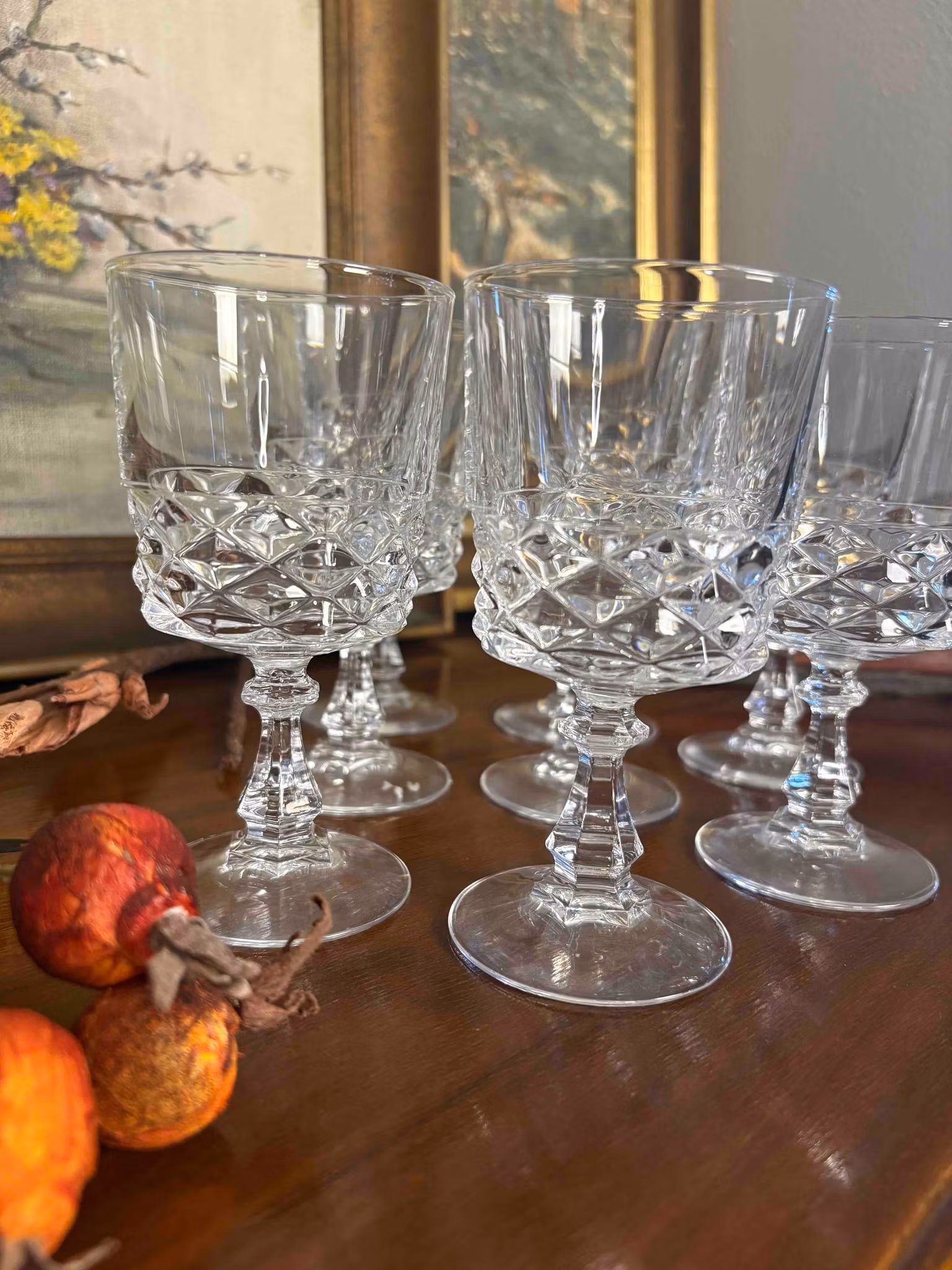 8 eleganta vinglas från Cristal d’Arques Diamond, ca 13 cm höga och 7 cm i diameter, i fint skick. Perfekta som unik inredningsdetalj till bordet.