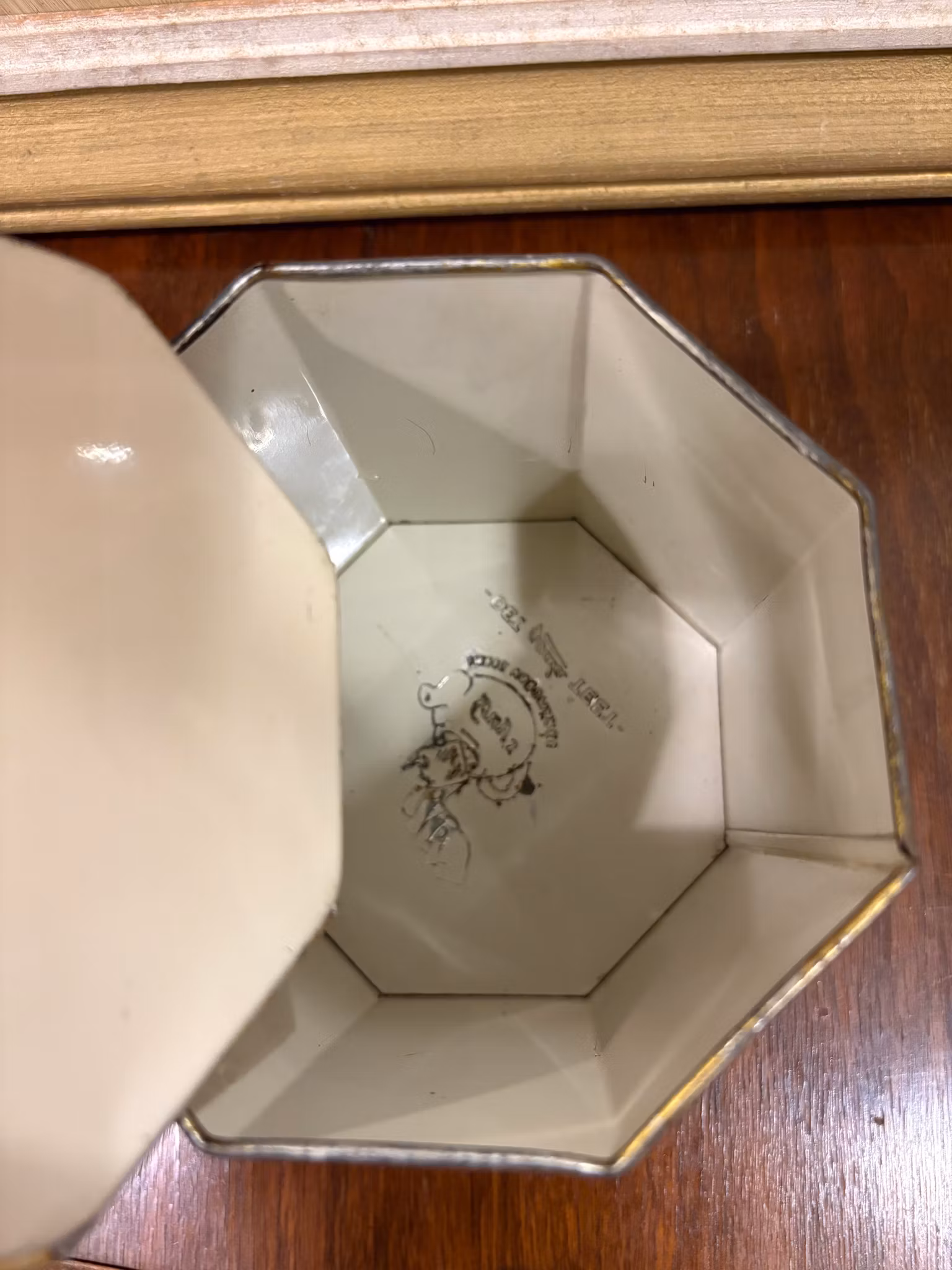 Burken är i bruksskick och har en tidlös känsla som gör den till ett fint tillskott i både klassiska och lantliga miljöer. Perfekt för dig som tycker om äldre plåtburkar med historia och stil.