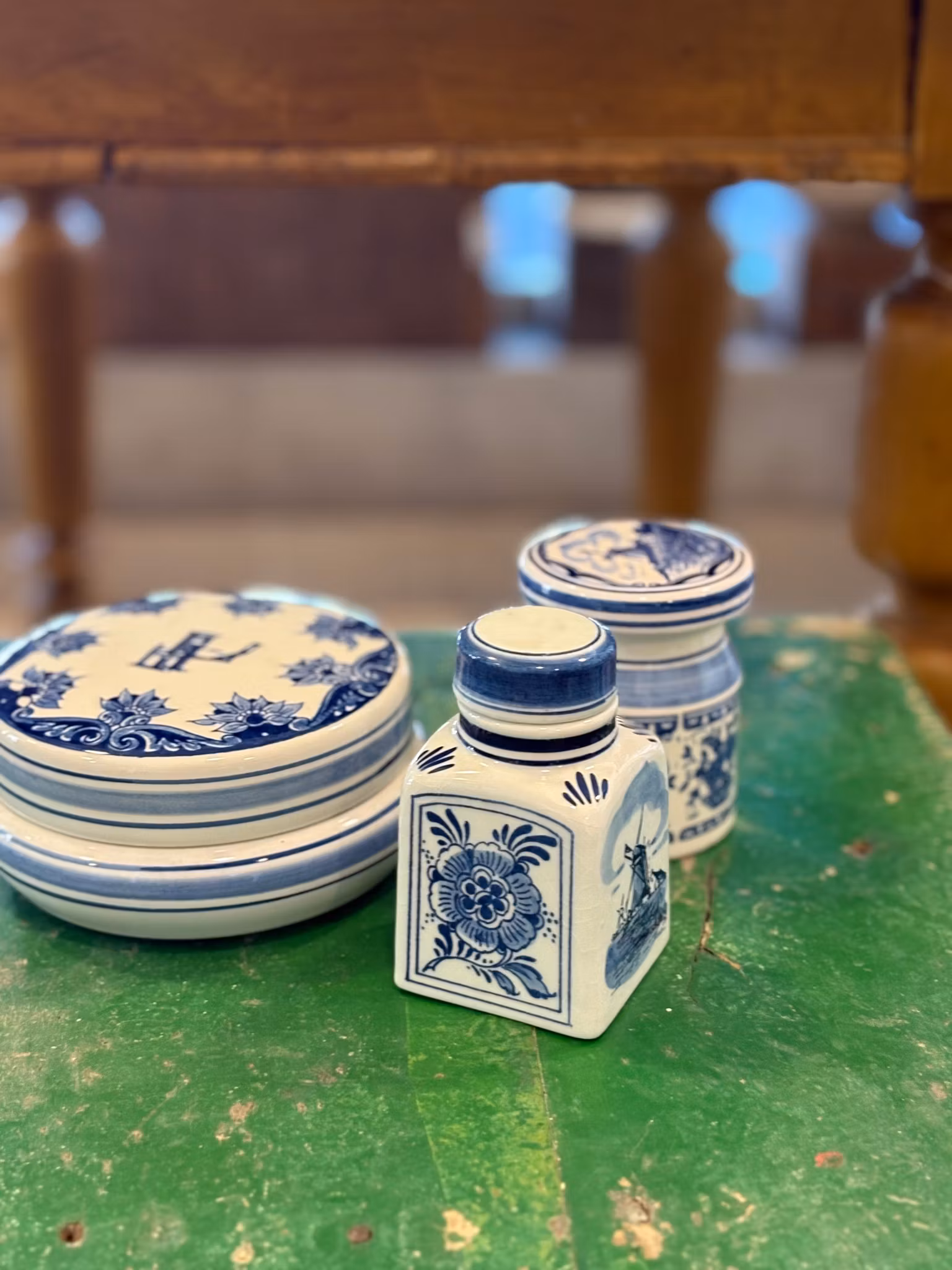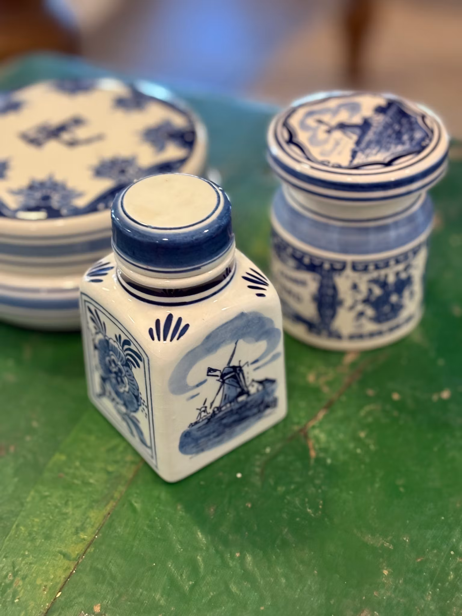 Burkar i blåvitt porslin - Set om 3 - Delfts