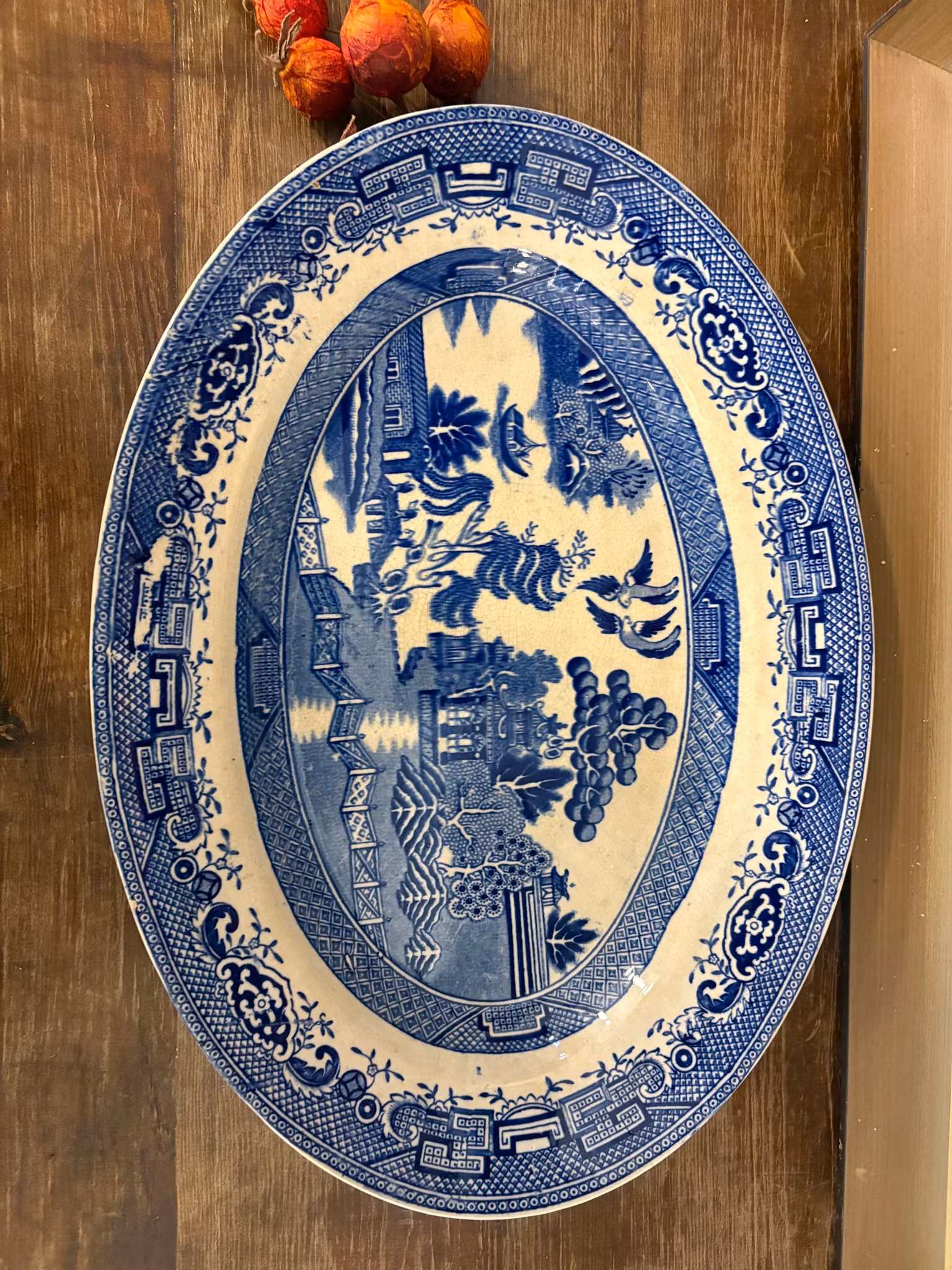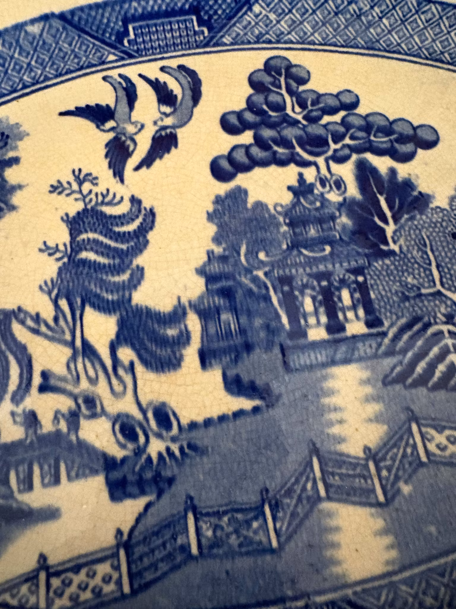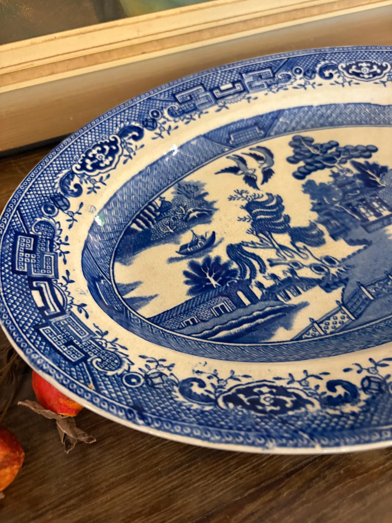 Det välkända Willow-mönstret berättar en tidlös historia och ger en charmig, lantlig känsla till dukningen.