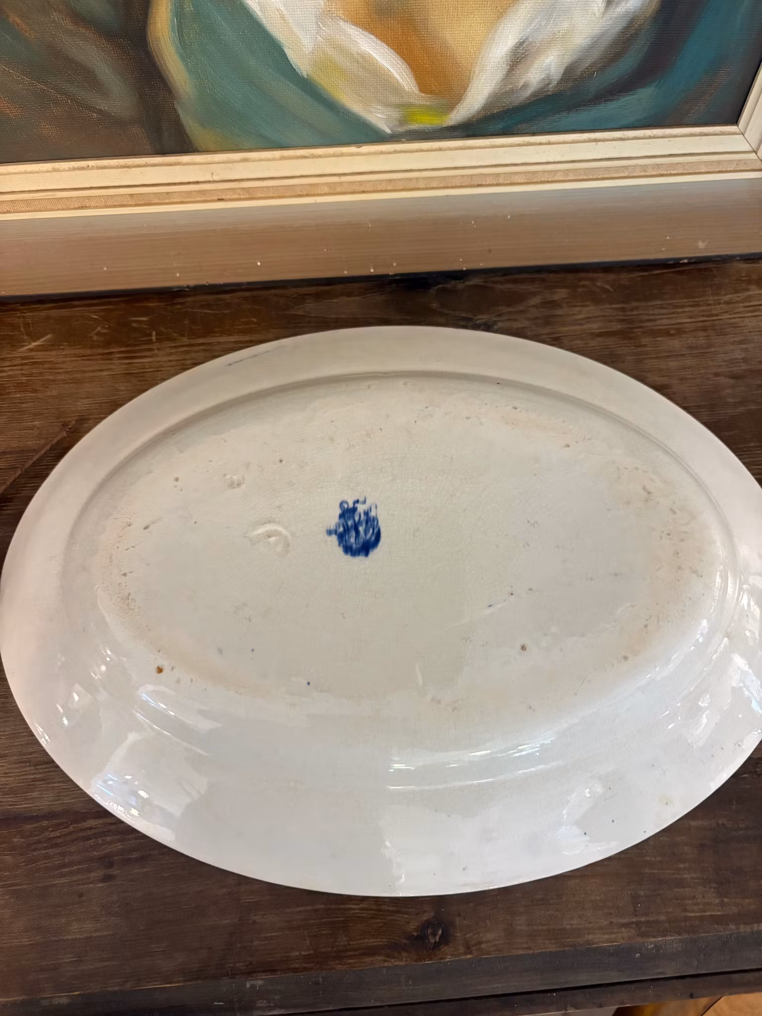 Vackert blåvitt serveringsfat från Gustavsberg i Willow-mönster. Bruksskick med fin krackelering – charmig detalj till dukning & samling.