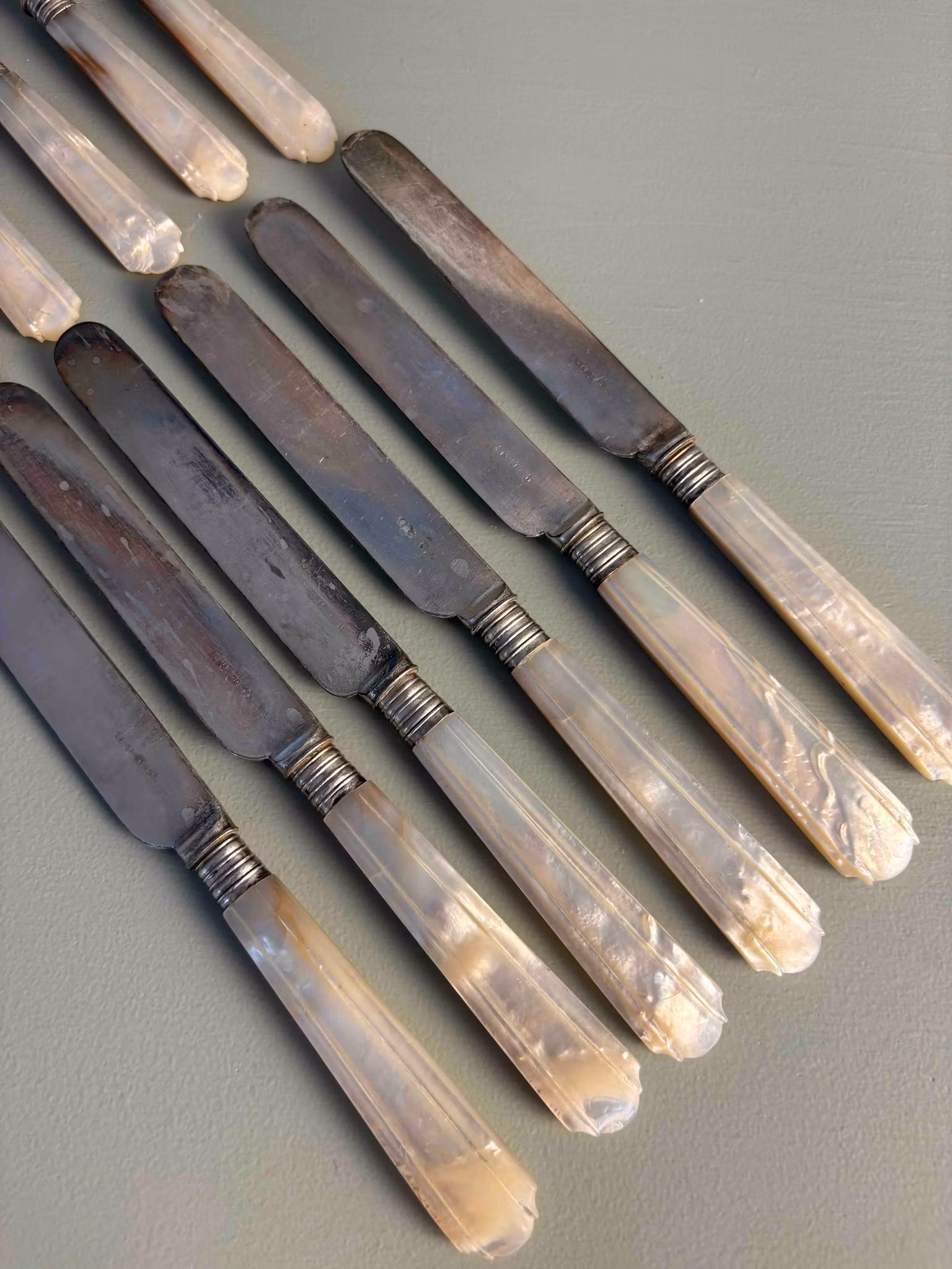Bestick i nysilver med pärlemorskaft, med en känsla som för tankarna till långsamma måltider och dukningar där detaljerna får ta plats. Skaften i pärlemor ger ett mjukt skimmer och en fin kontrast till det svala nysilvret.