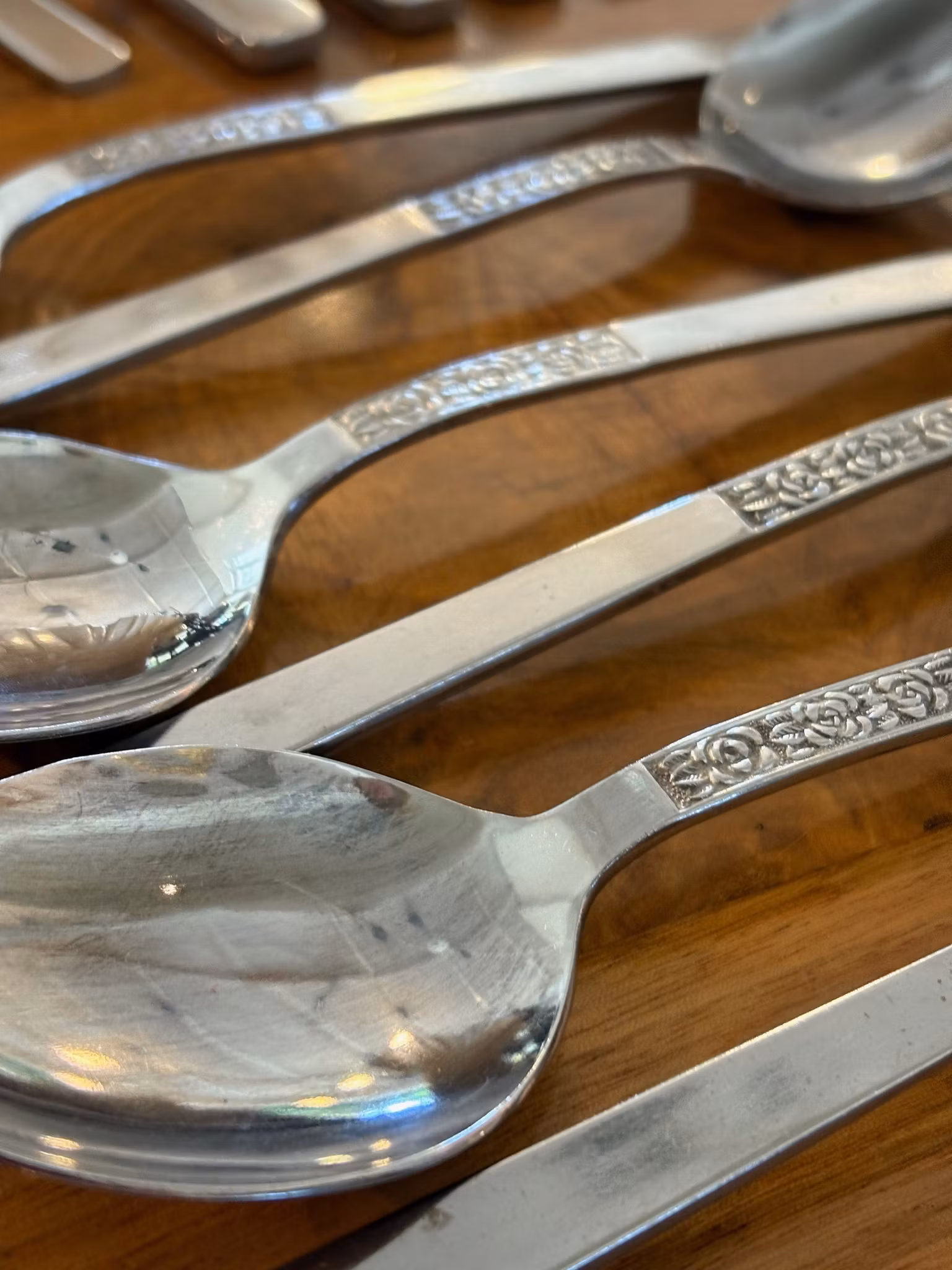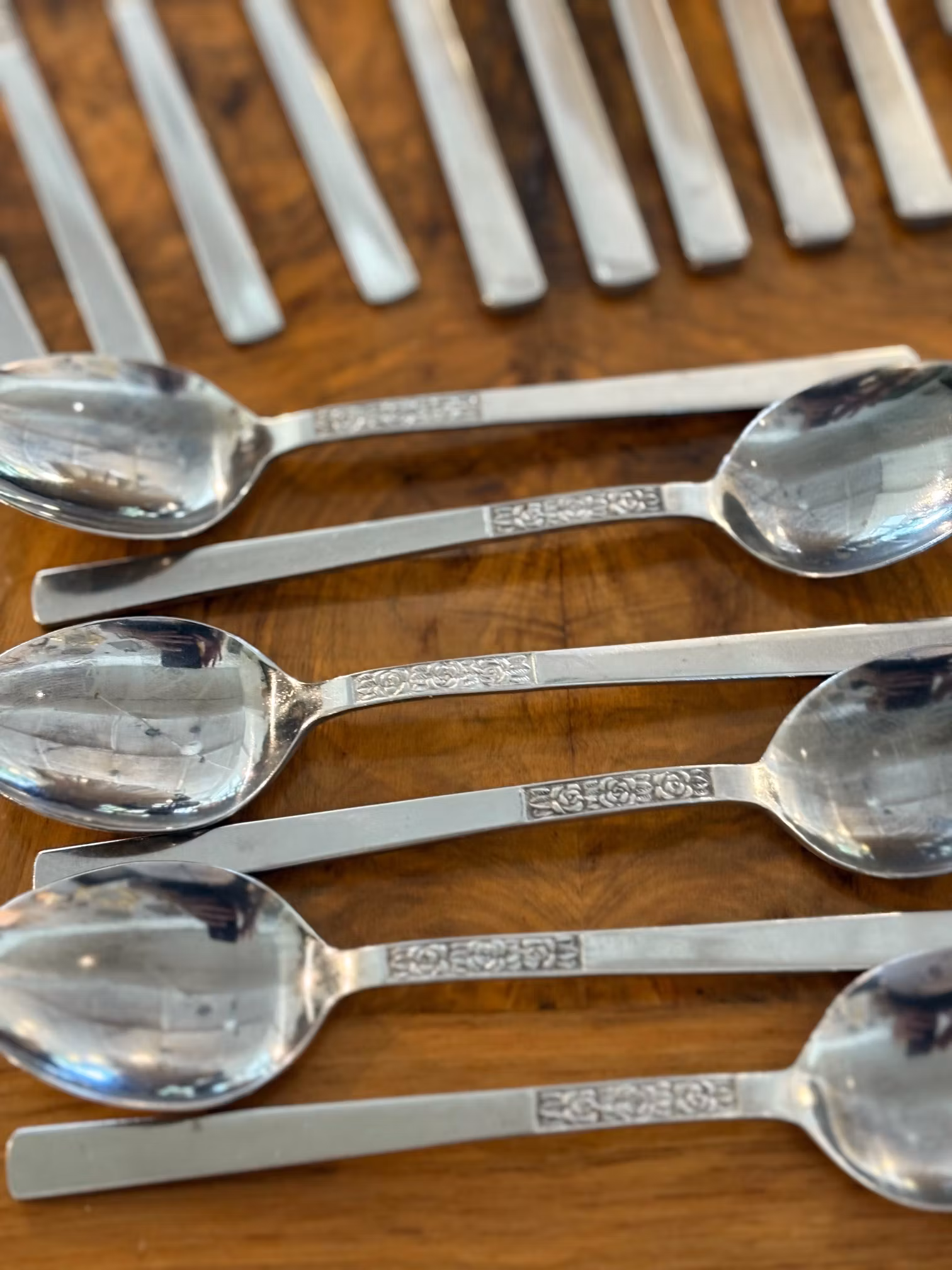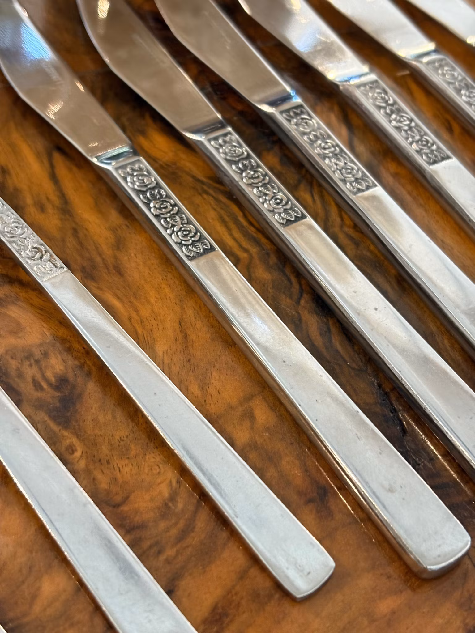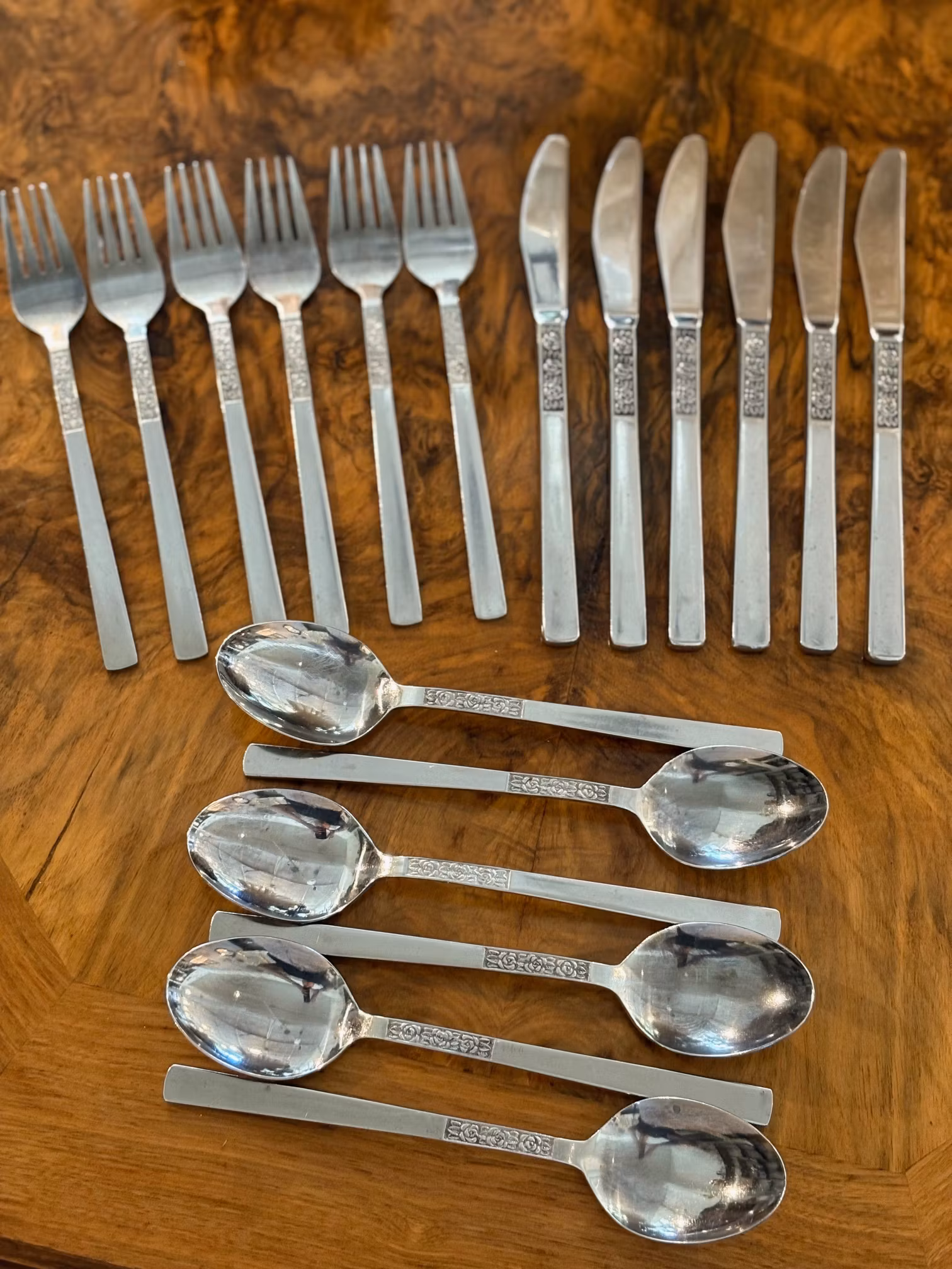 Ge dukningen en härlig touch av 70-talets charm med detta bestickset i serien ”Rosen”. Setet består av 18 delar.