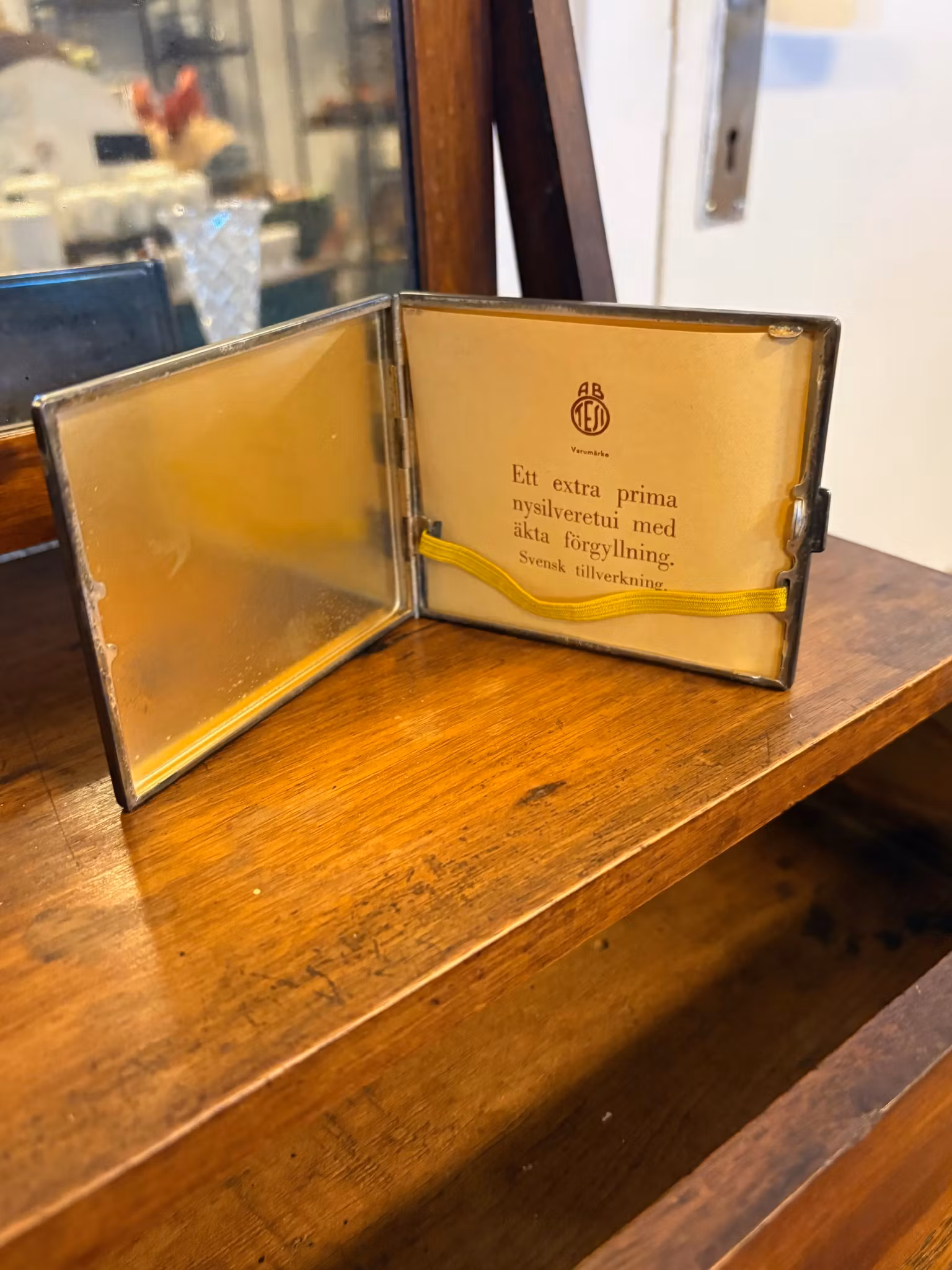 Upptäck ett stilfullt och tidlöst cigarettetui i nysilver, tillverkat i Sverige – ett perfekt exempel på skandinavisk elegans och hantverkstradition.