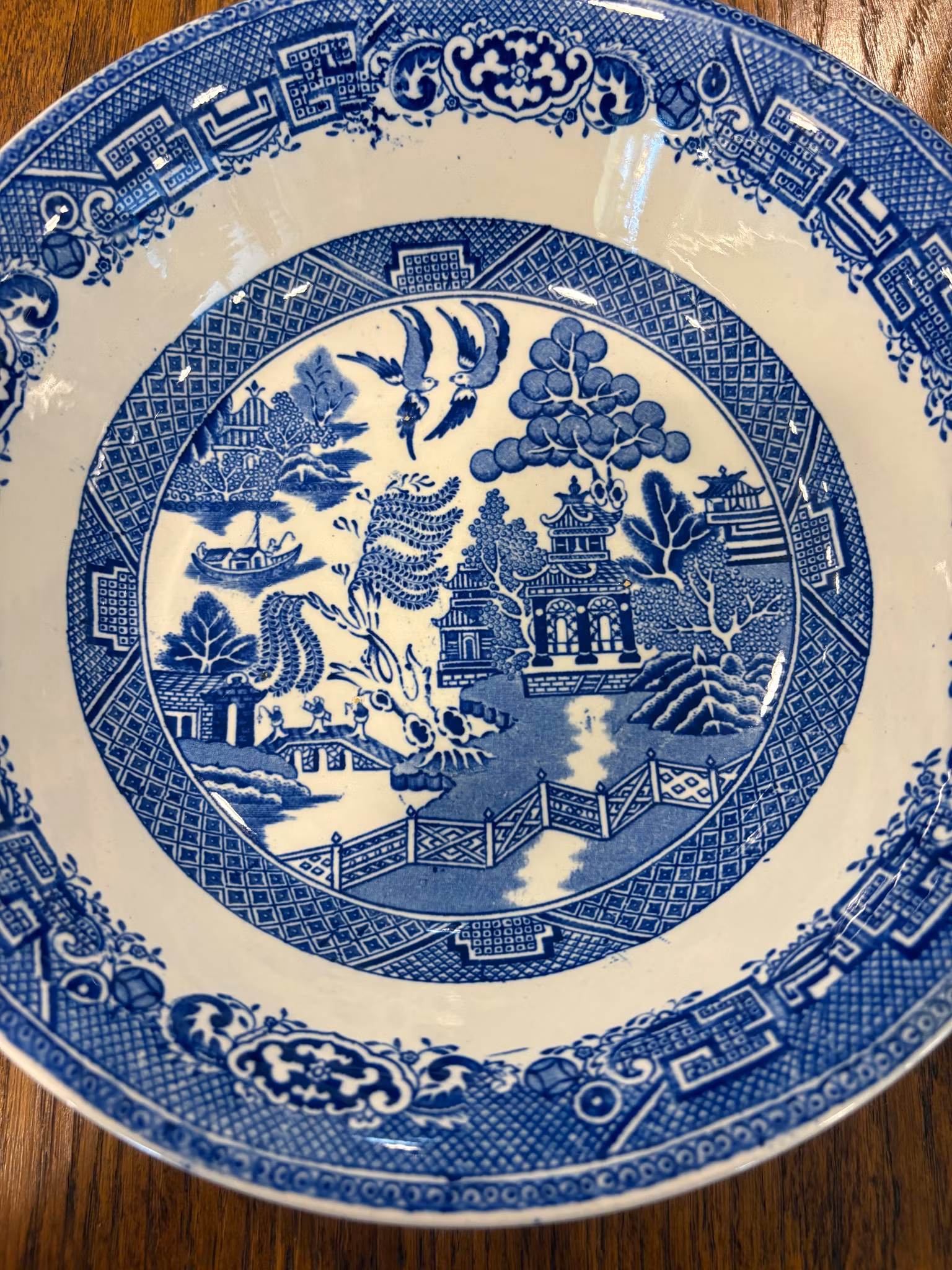 Skål Willow från Old Gustavsberg. Vacker blåvit porslinsskål med klassiskt motiv – fint bruksskick utan nagg eller sprickor. D ca 25 cm, H ca 7 cm. Perfekt som