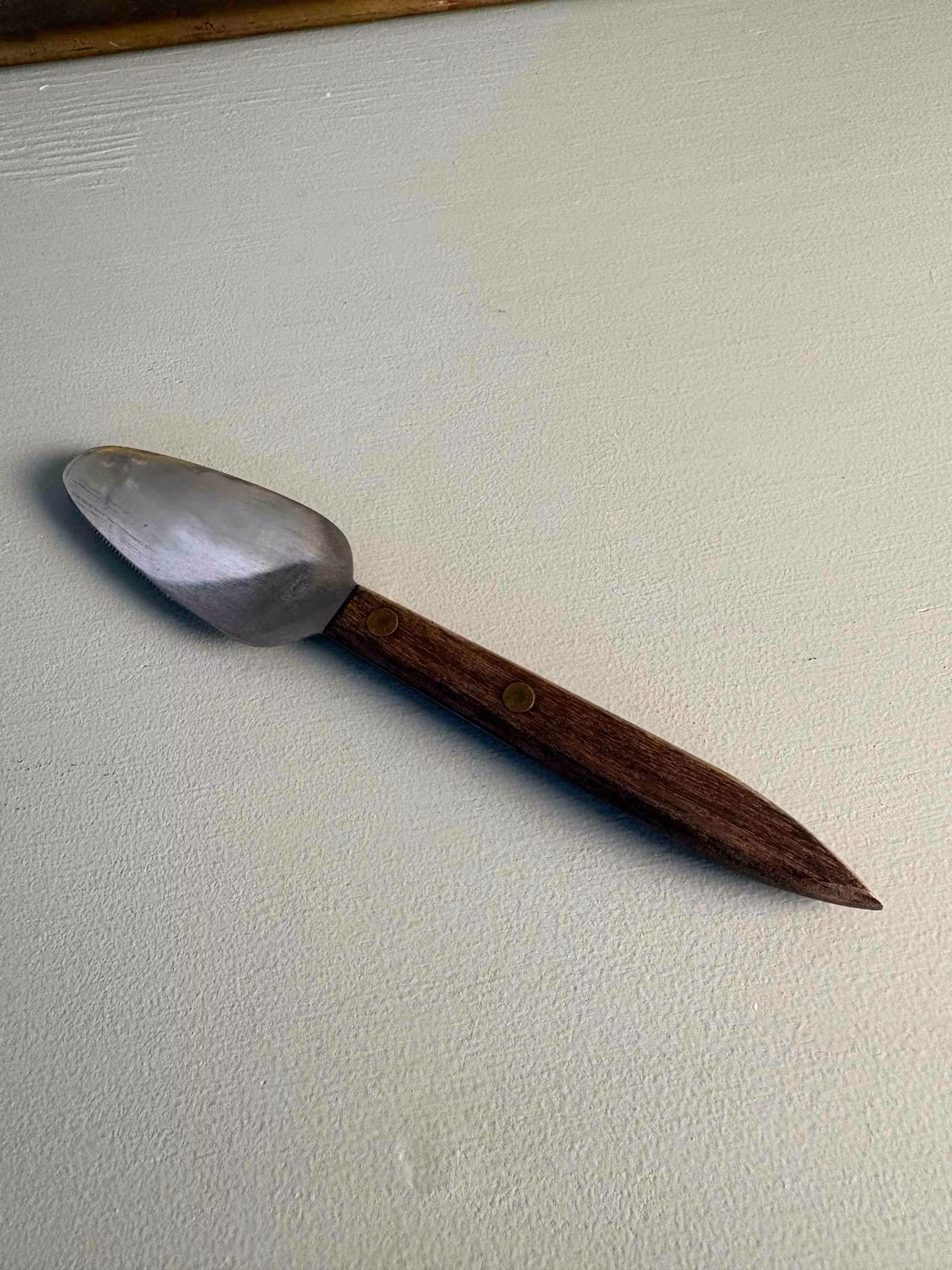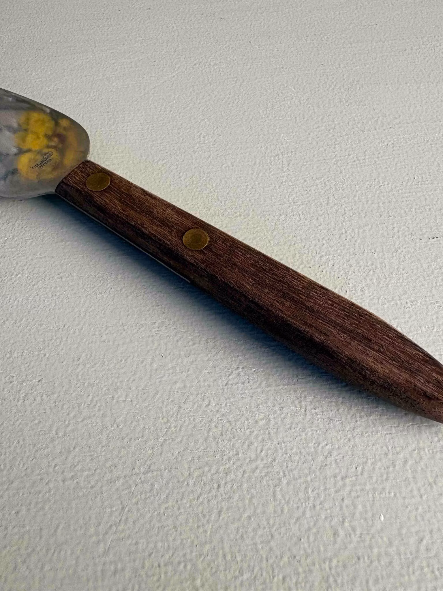 En enkel men charmig smörkniv med varmt träskaft och ett blad som passar lika bra till vardag som till servering. Den ligger fint i handen och för tankarna till långsamma morgnar, knäckebröd och dukade bord.