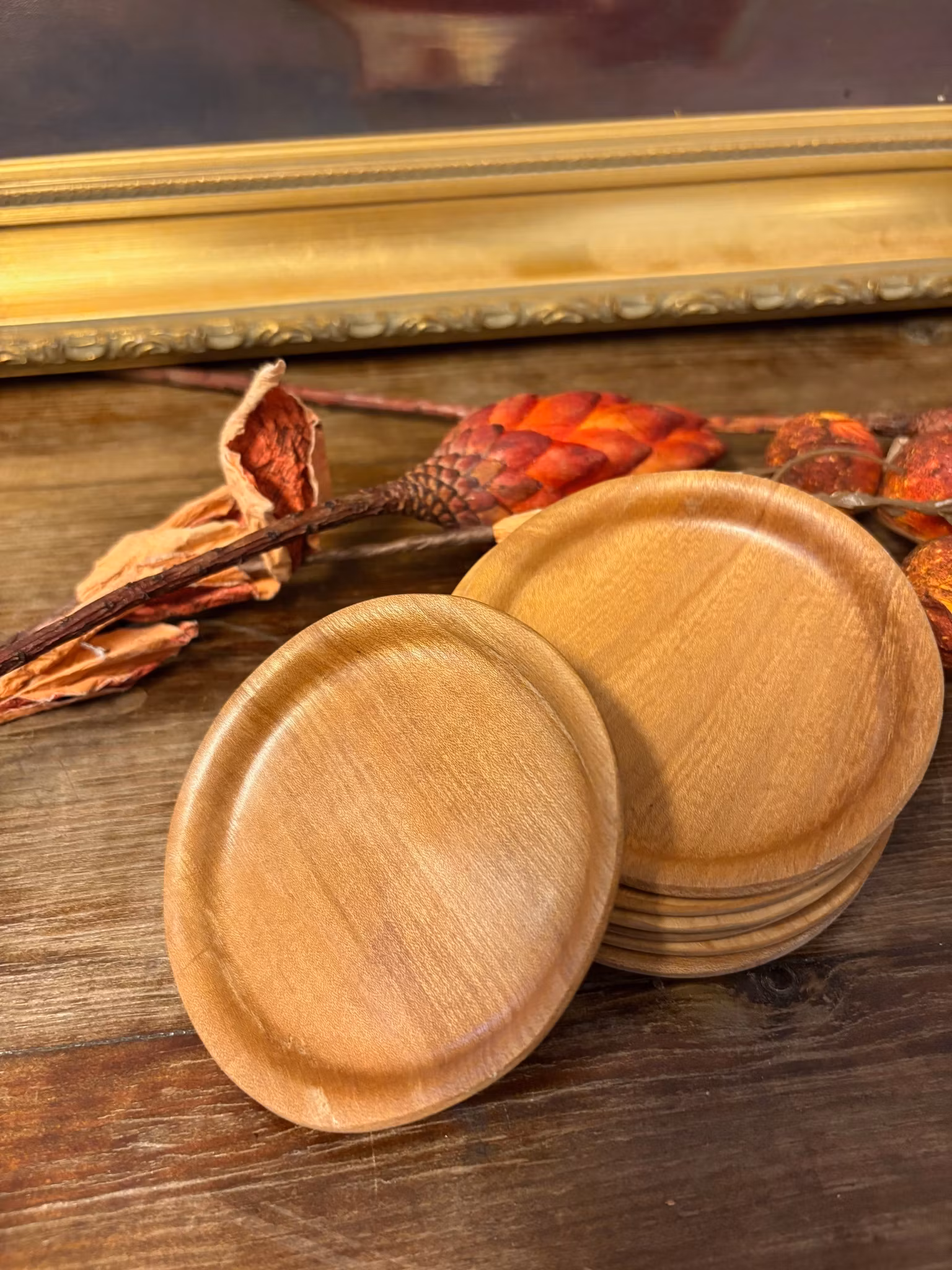 6st vackra glasunderlägg i trä