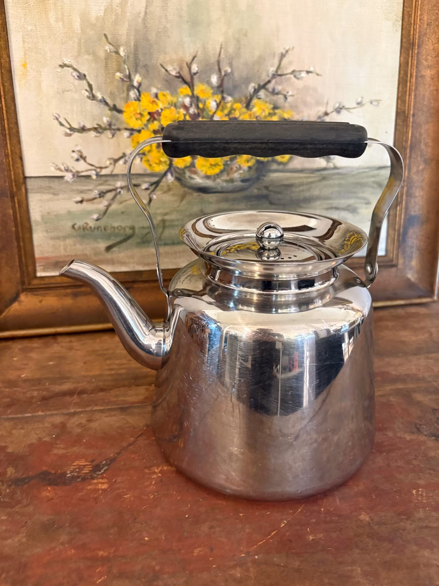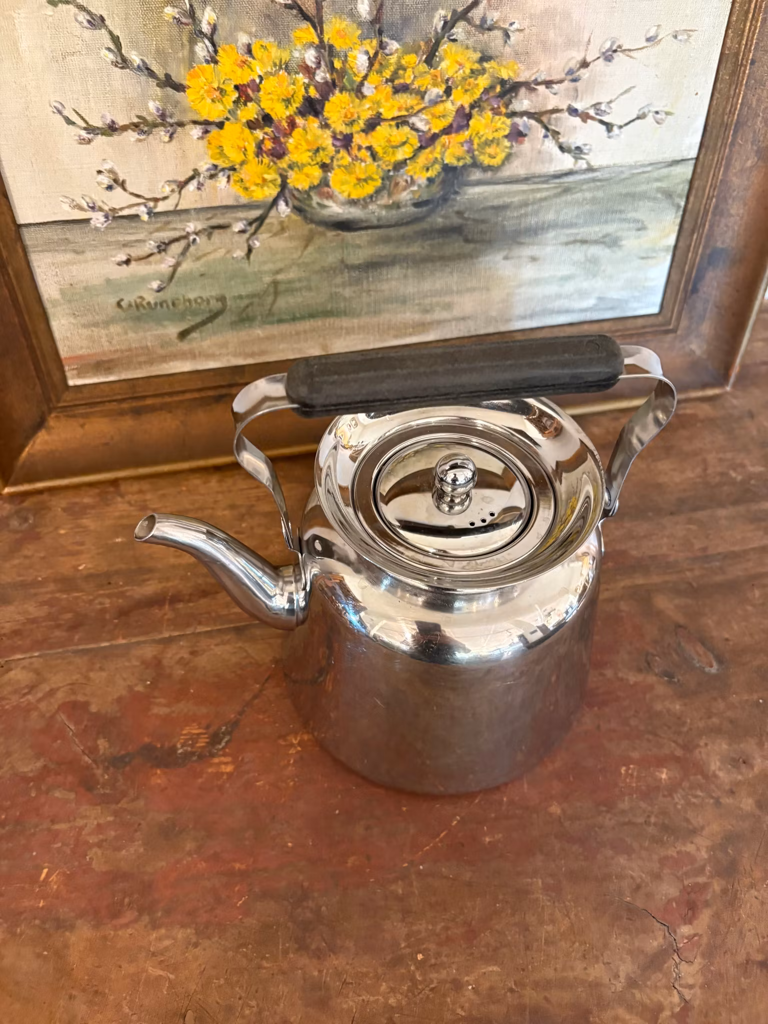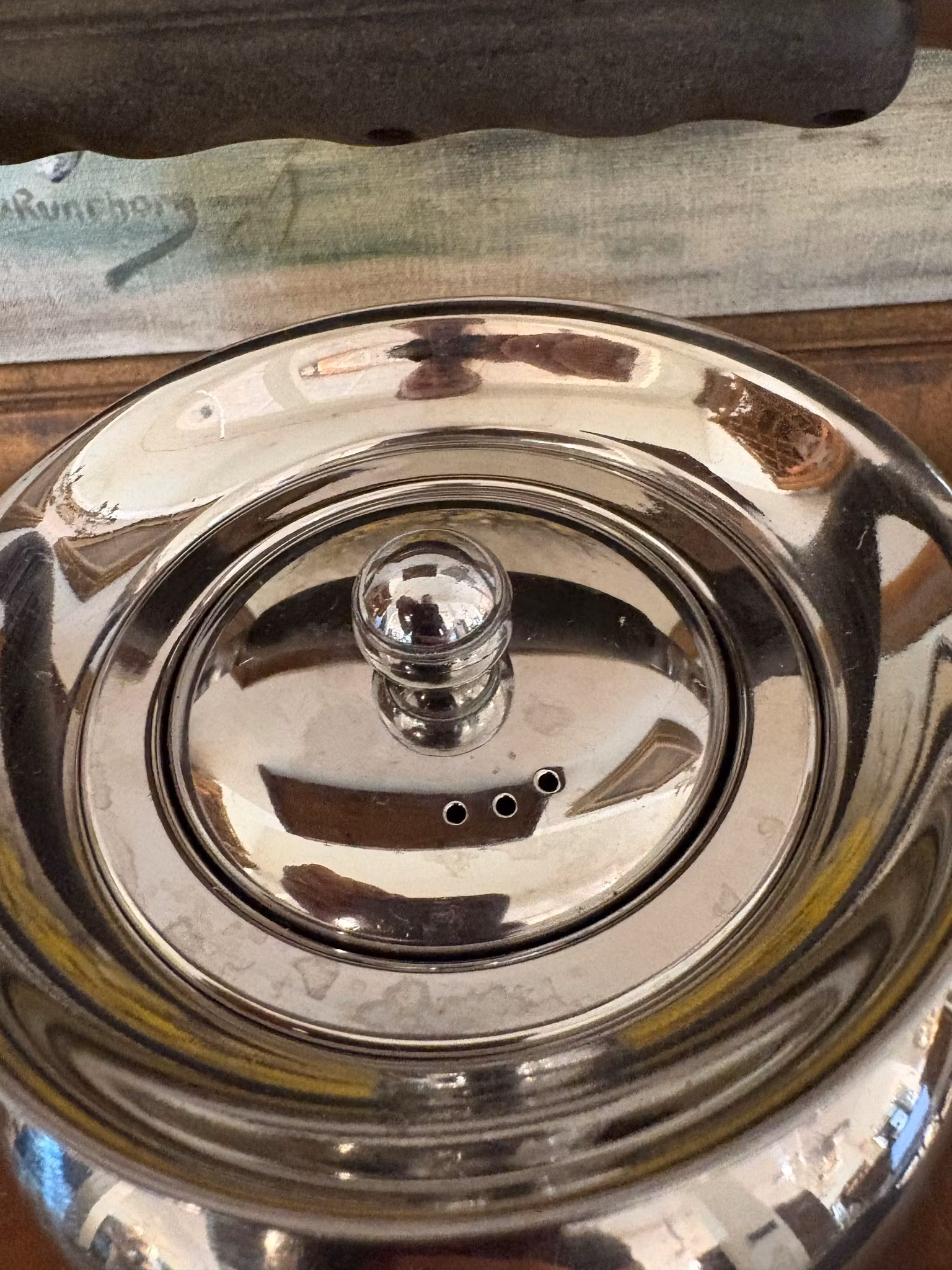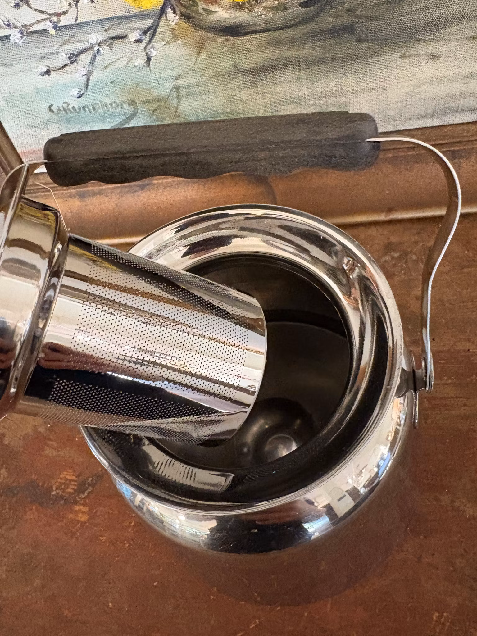 En elegant tekanna som bjuder in till stilla stunder och doftande te. Den klassiska designen i rostfritt stål ger både hållbarhet och en tidlös charm, medan silen gör det enkelt att brygga löste på bästa sätt.
