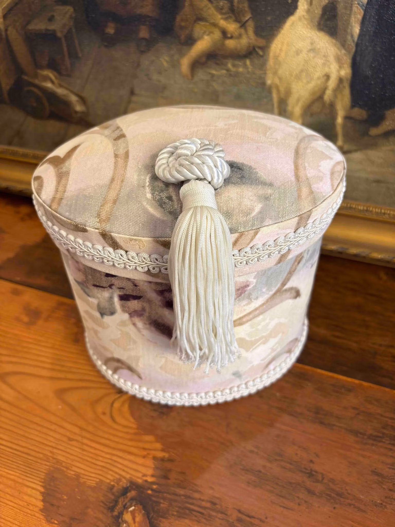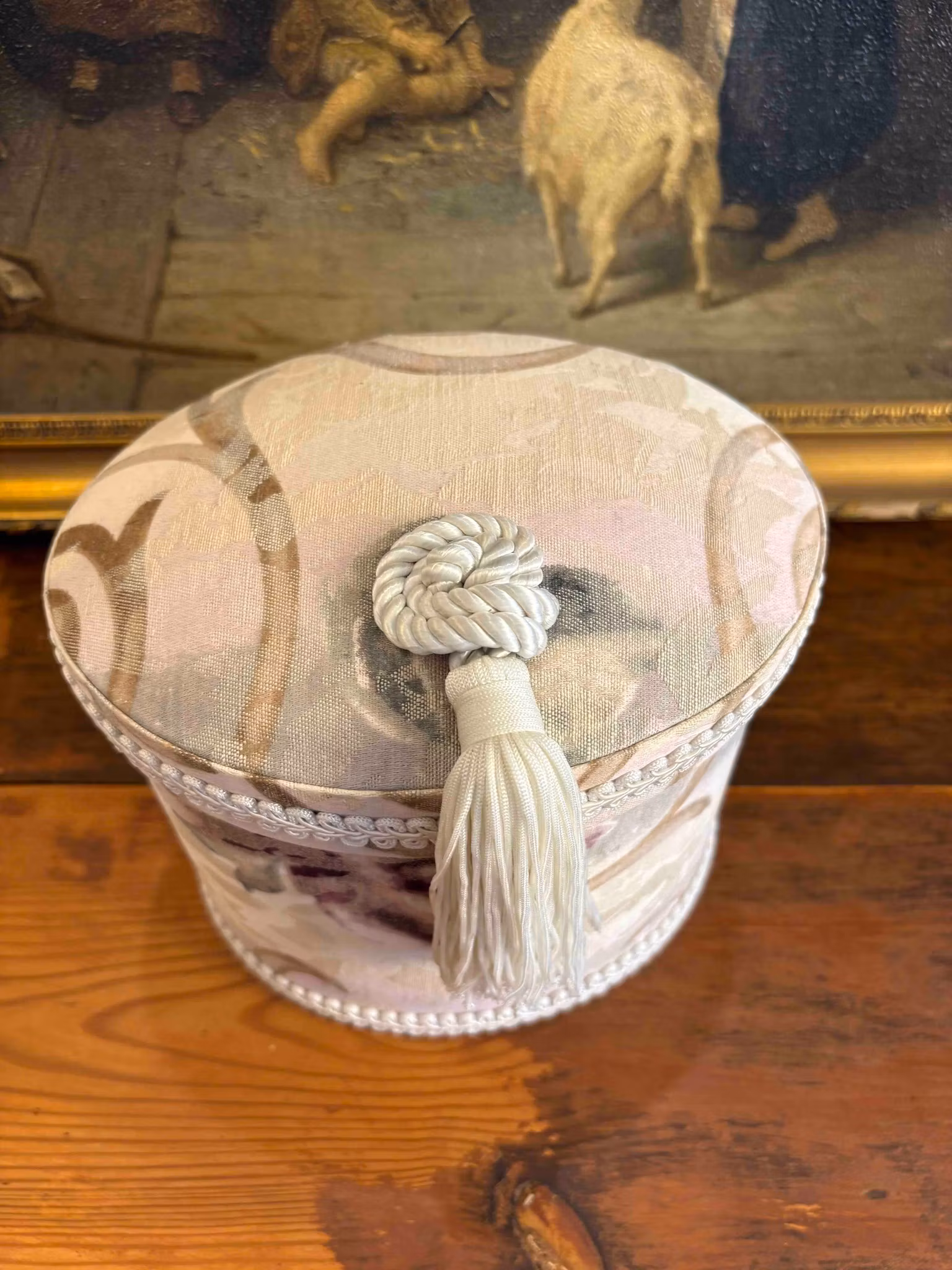Textilklädd prydnadsask för smycken och småförvaring. En dekorativ och praktisk ask som ger hemmet en varm och personlig känsla.
