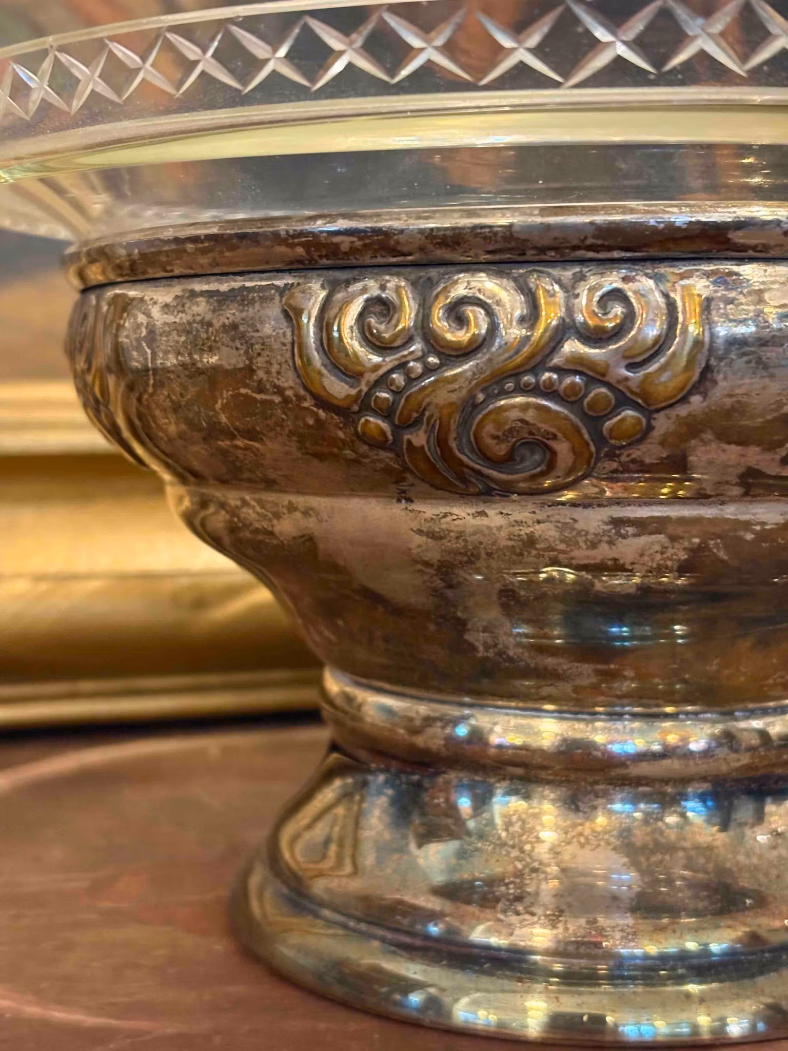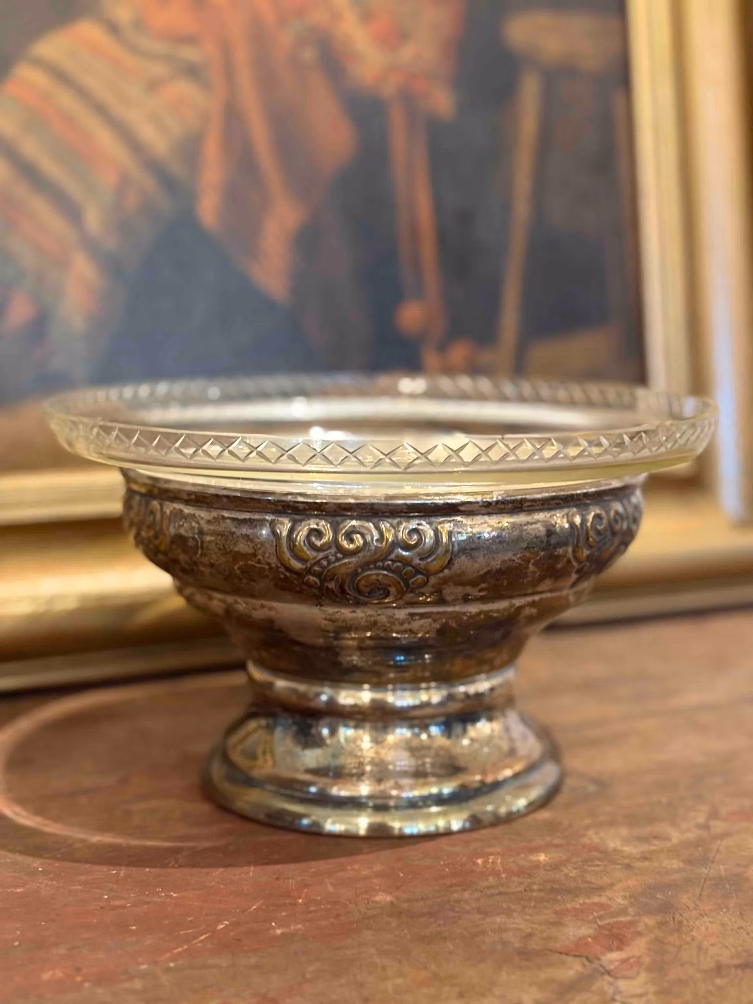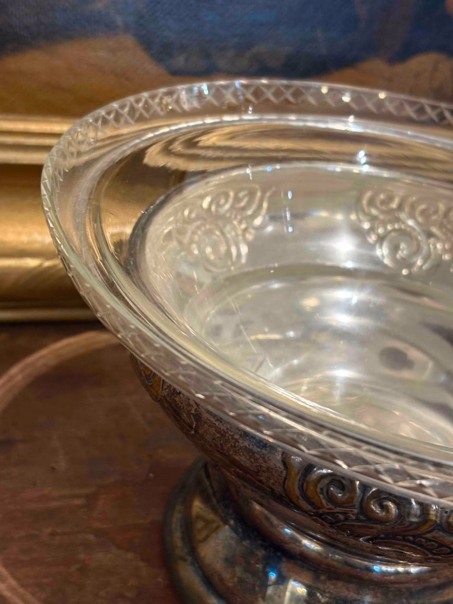 Vacker bordsuppsats i glas och nysilver