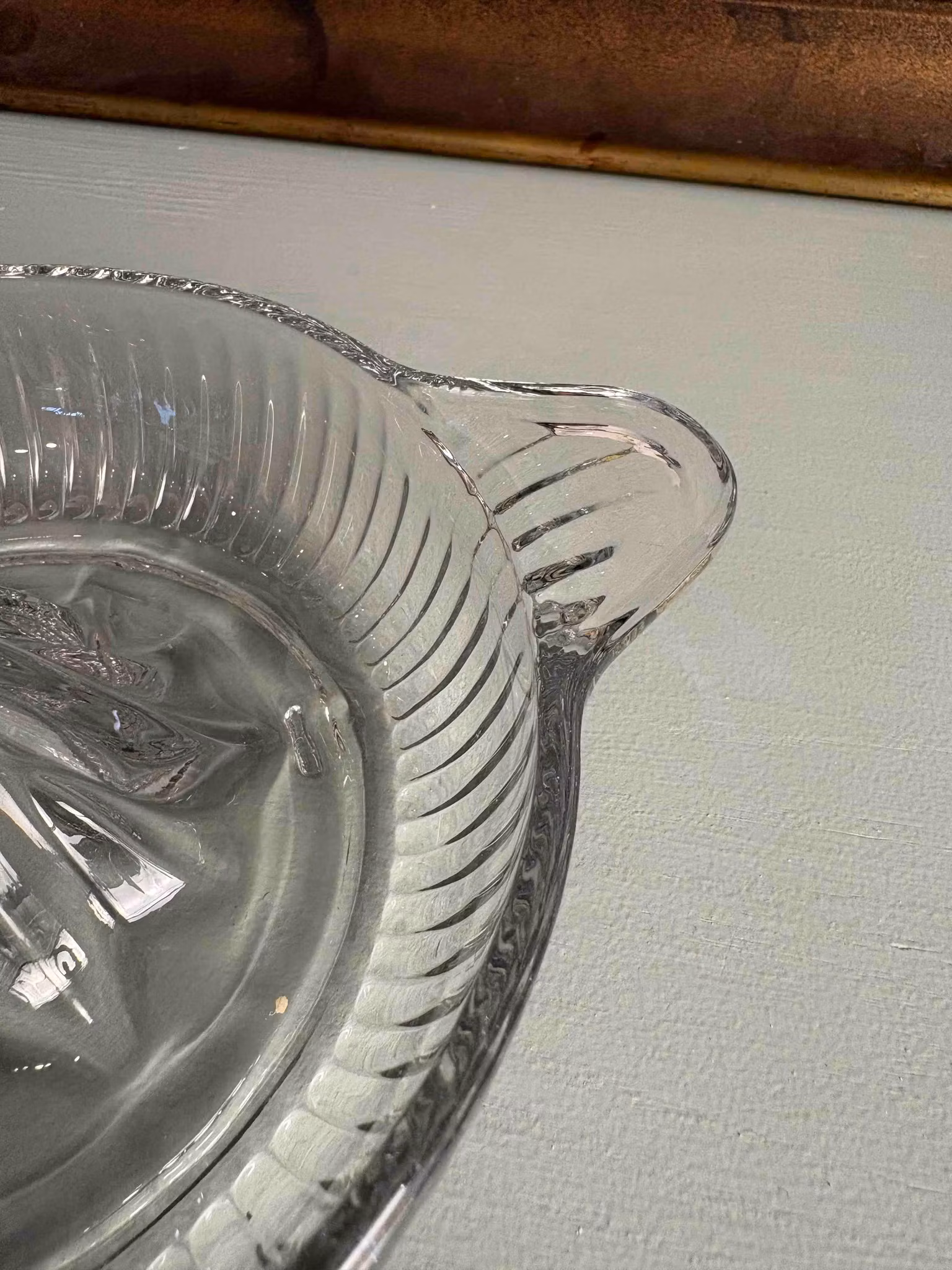 En vacker citruspress i glas där ljuset får spela fritt genom den klara ytan och framhäva formens enkla linjer. Det är ett föremål som känns lika mycket som en del av köket som av stunden – något att ta fram i lugna morgnar eller vid dukningar där detaljerna får ta plats.