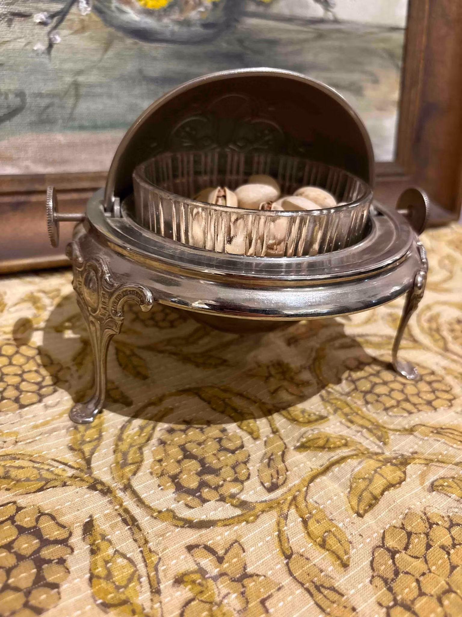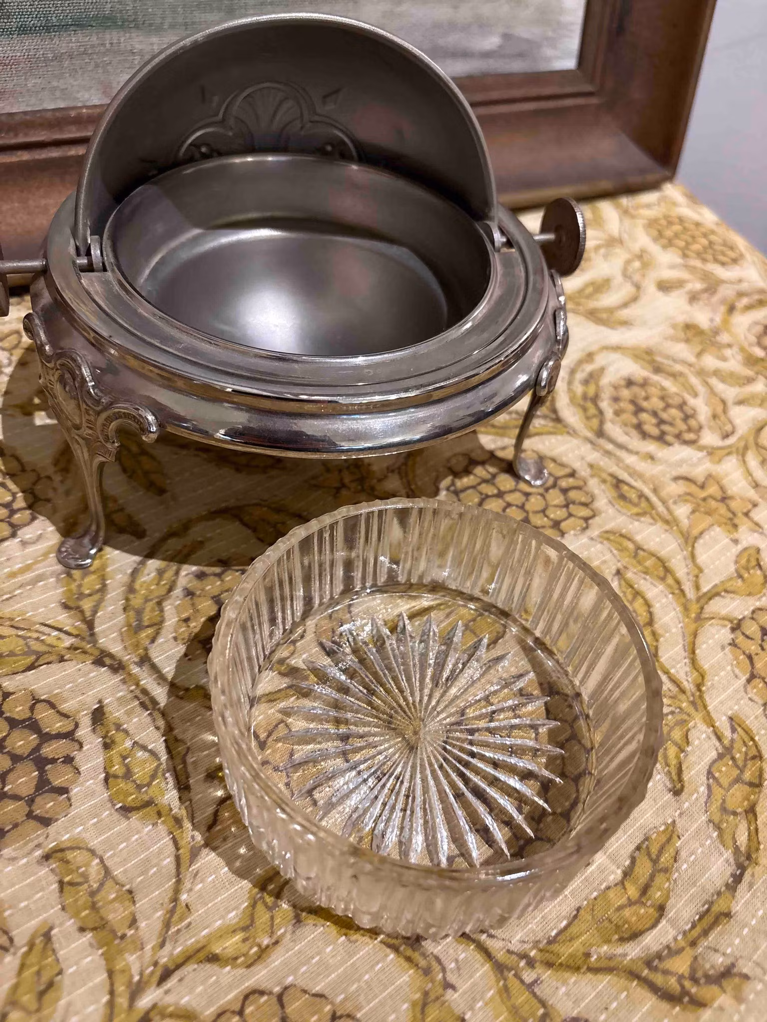 Vacker kaviargömma med glasinsats i fint skick. En charmig och elegant detalj för servering av kaviar eller små tillbehör.