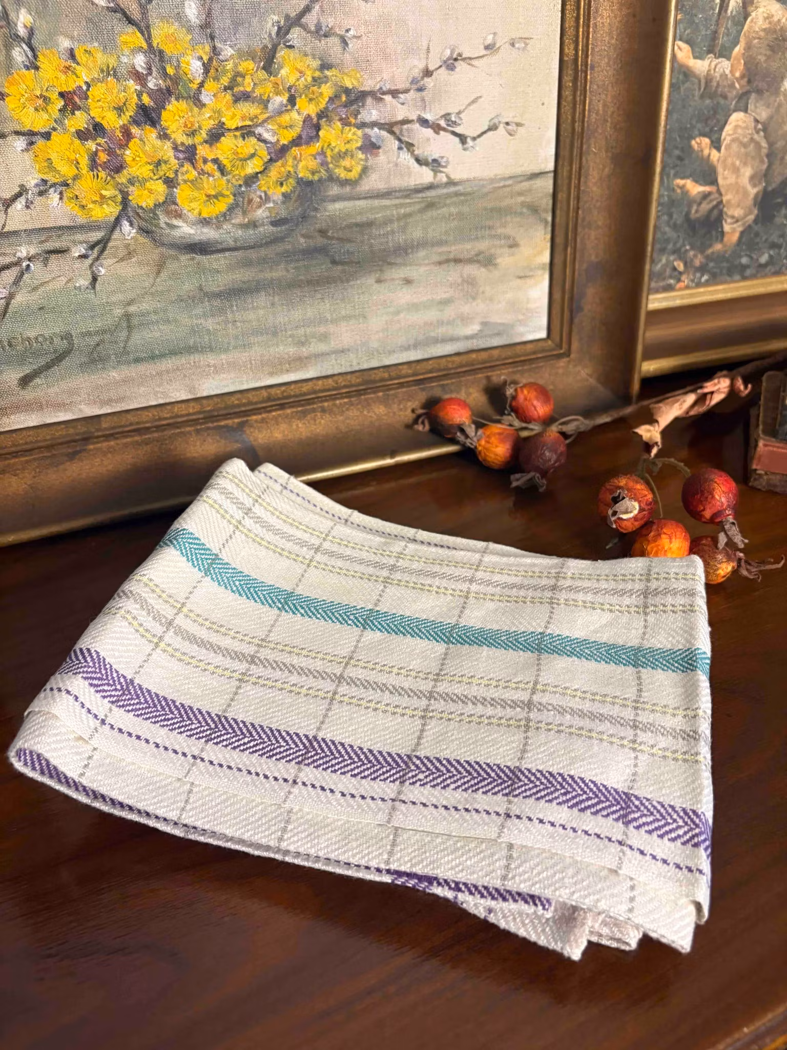 En vacker kökshandduk i linne, i nyskick, med ett broderat monogram B. Handduken säljs styckvis och är både praktisk och dekorativ i köket. Perfekt för vardaglig användning eller som en elegant detalj i dukningen eller vid servering.