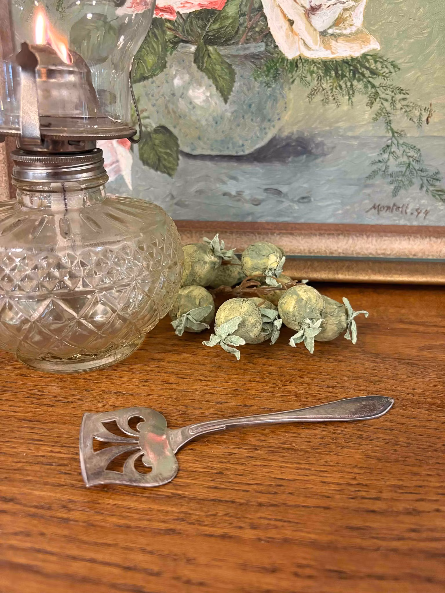 En elegant sardingaffel i nysilver med vackra linjer och klassisk form. Perfekt till servering av små rätter, sardiner eller tilltugg – en detalj som tillför både glans och charm till det dukade bordet.